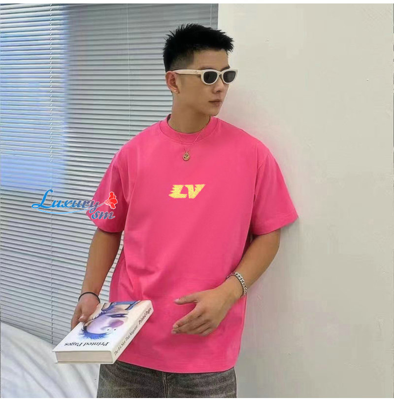 LOUIS VUITTON-05178 루이비통 핑크 아플리케 장식 티셔츠 남여공용