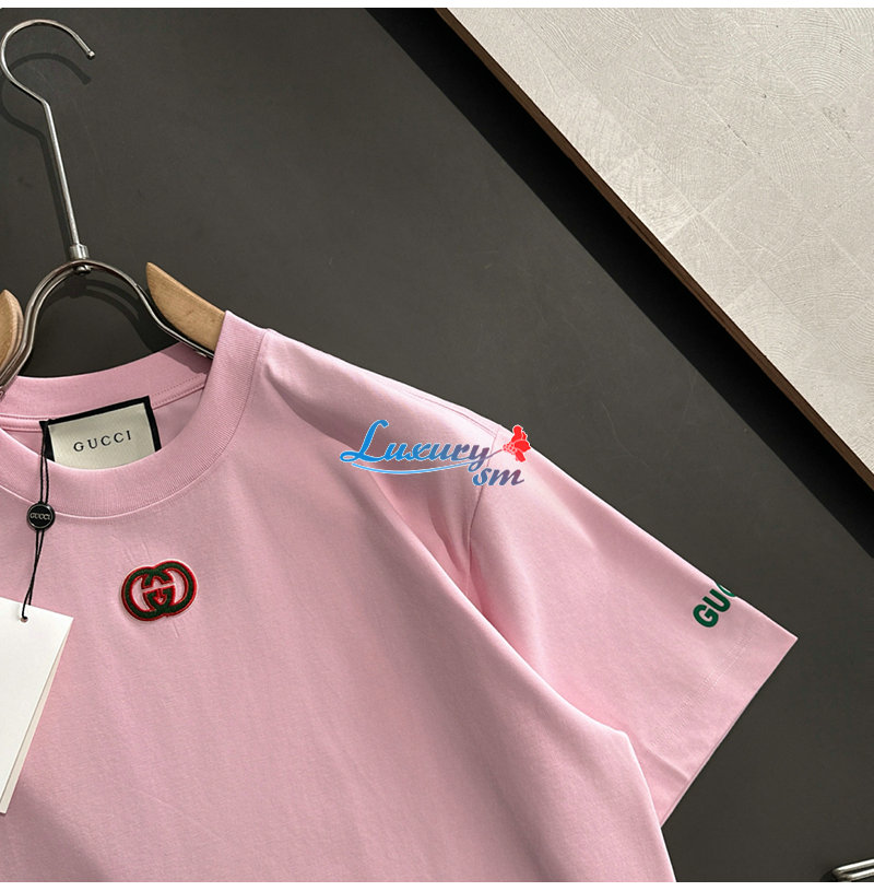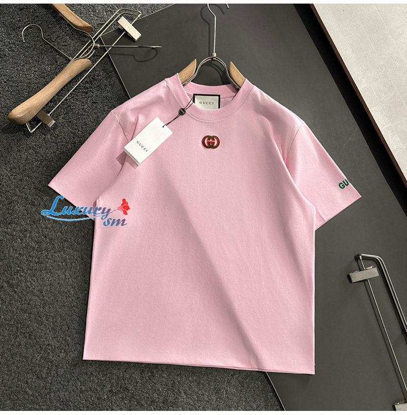 GUCCI-06265 구찌 핑크 GG 아플리케 장식 티셔츠 남성용