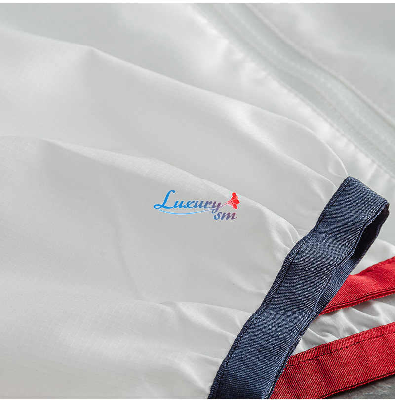 THOM BROWNE-08111 톰 브라운 화이트 스트라이프 장식 바람막이 후드 재킷 남성용