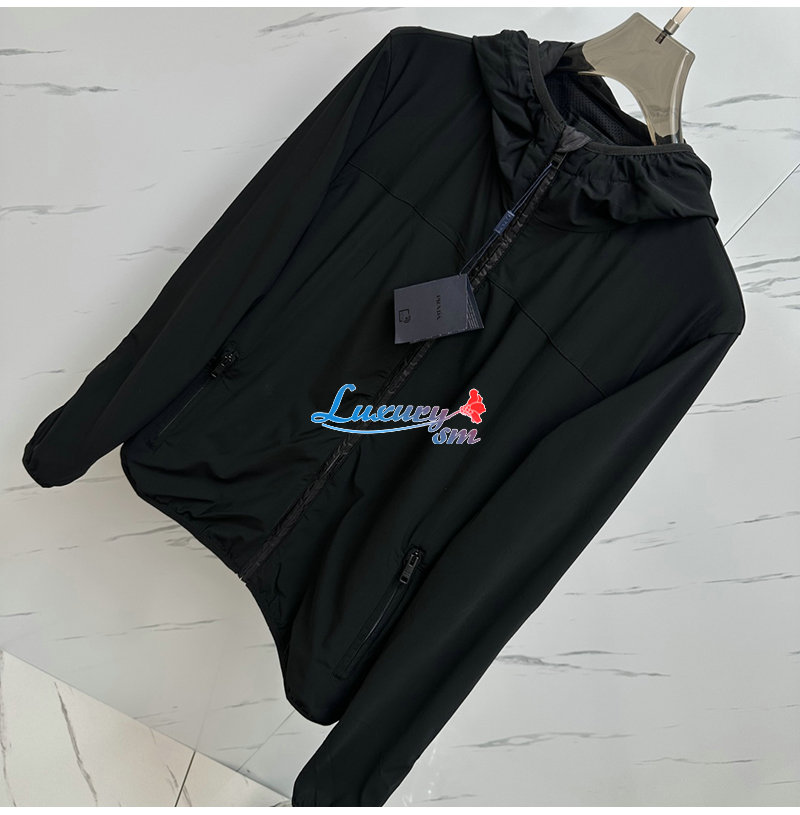 PRADA-08116 프라다 블랙 나일론 바람막이 후드