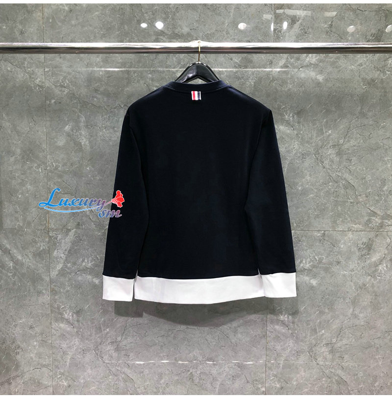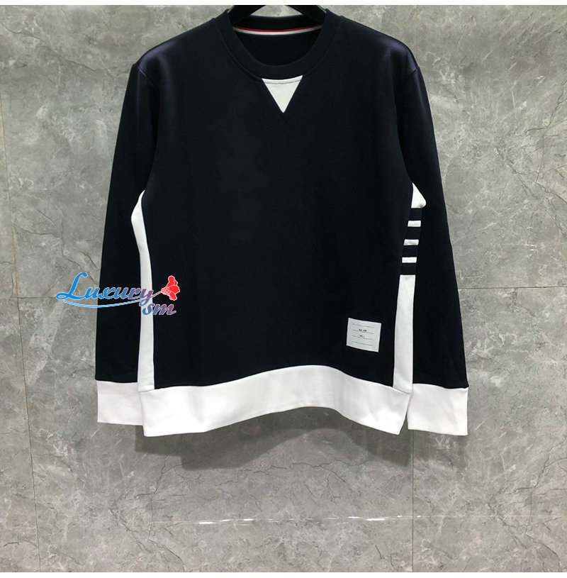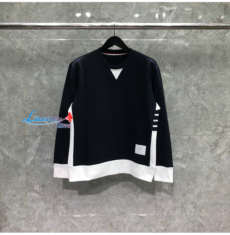 THOM BROWNE-08207 톰 브라운 네이비 스트라이프 장식 스웨트셔츠 남성용