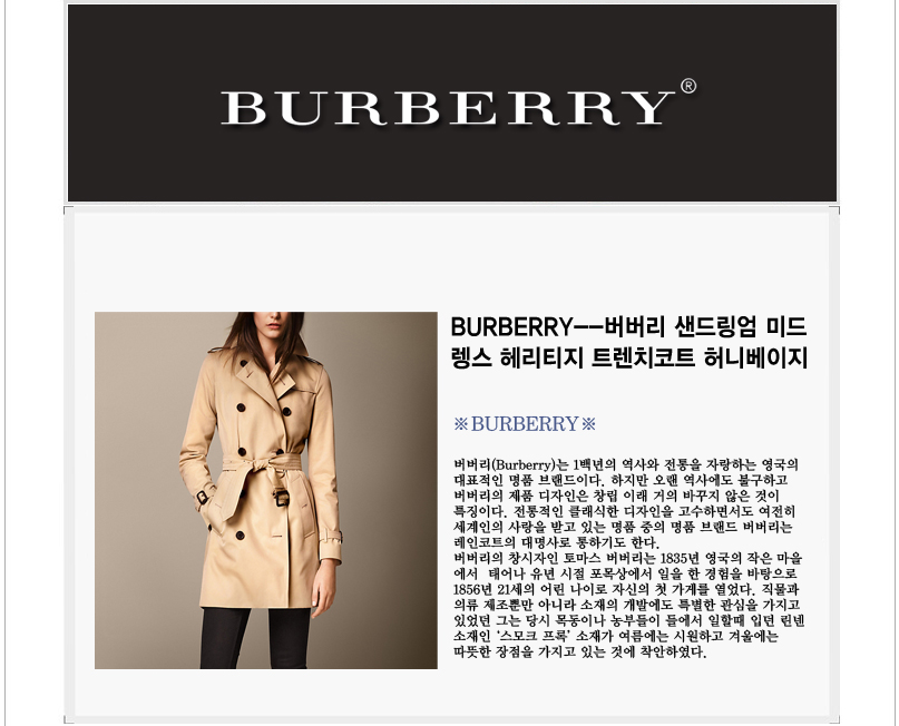 [스페셜오더]BURBERRY-버버리 샌드링엄 미드 렝스 헤리티지 트렌치코트 허니베이지