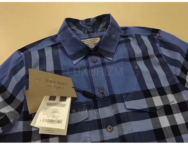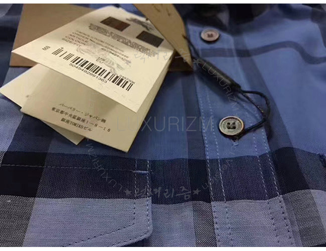 BURBERRY-40369601 버버리 하이드레인저 블루 체크 코튼 셔츠 여성용