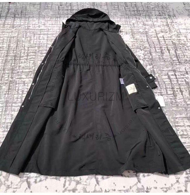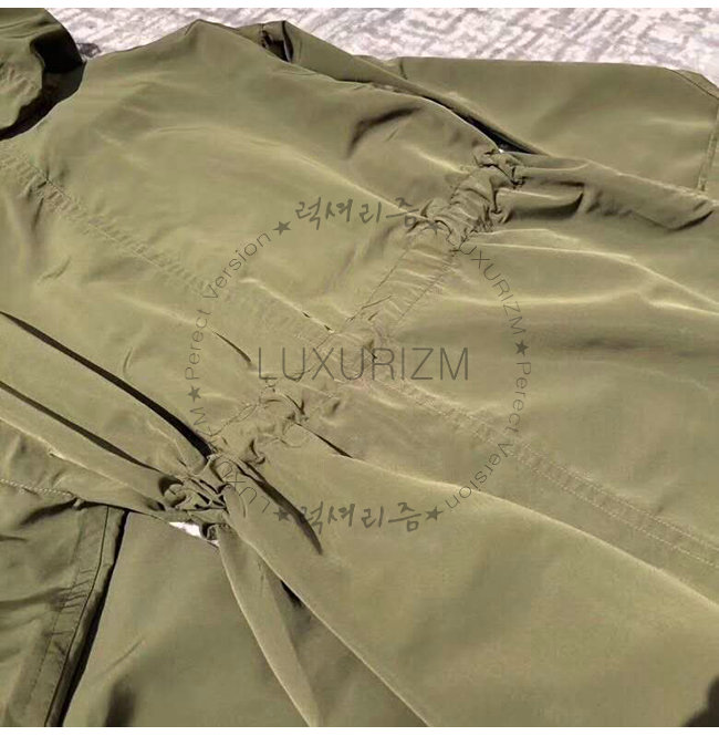 Froisse 기술 긴 파카 두 개의 수 놓은 구멍에서 나오는 리본 드로우