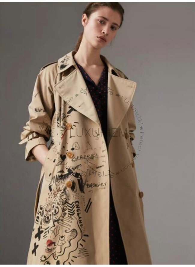 [스페셜오더]BURBERRY-40664191 버버리 스케치 프린트 코튼 개버딘 트렌치코트