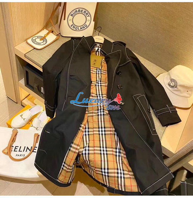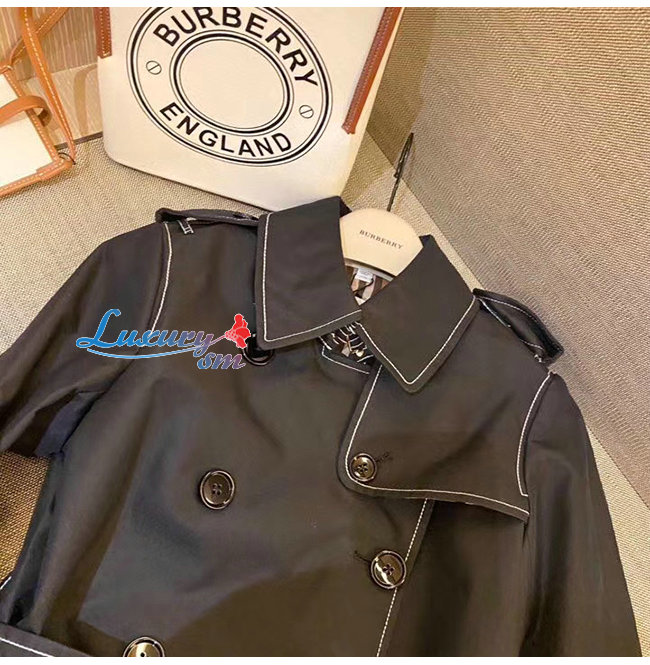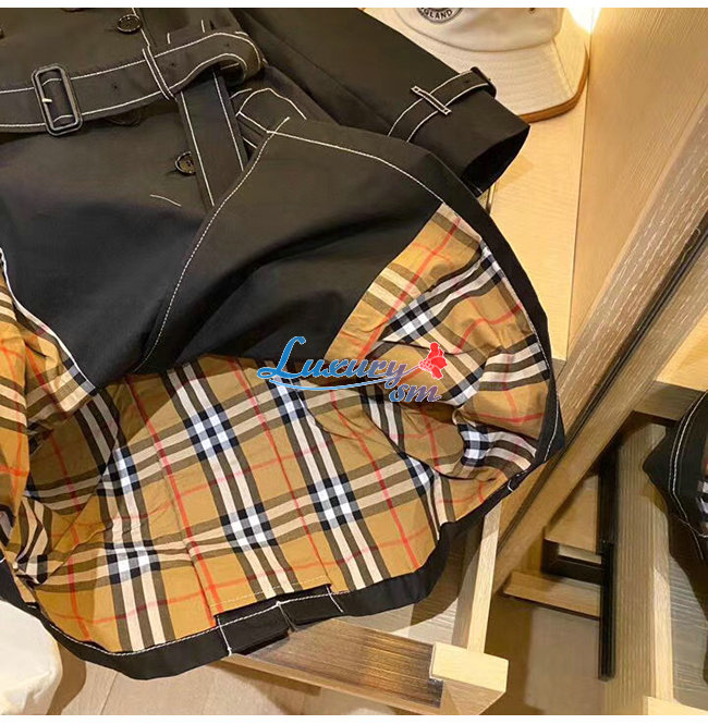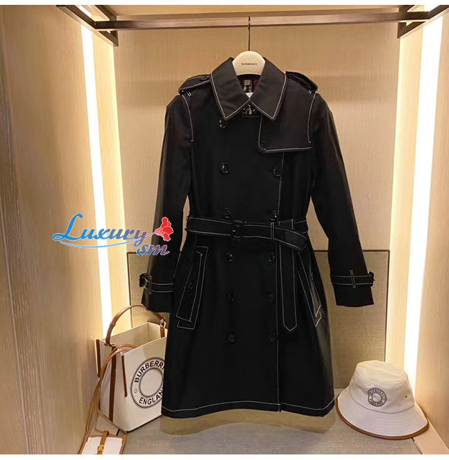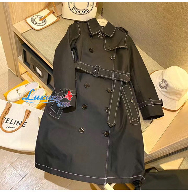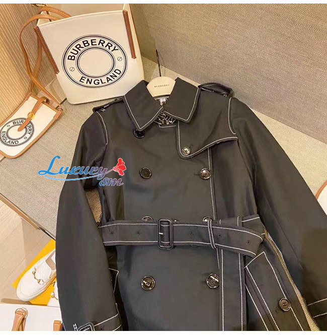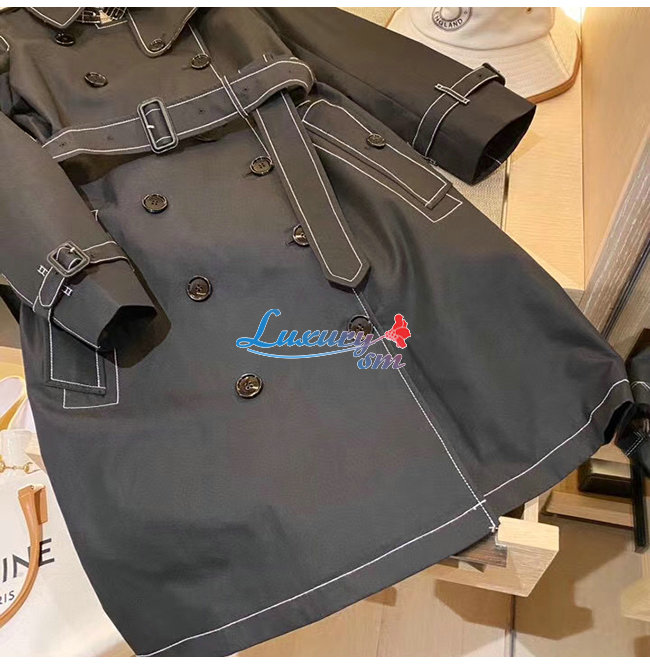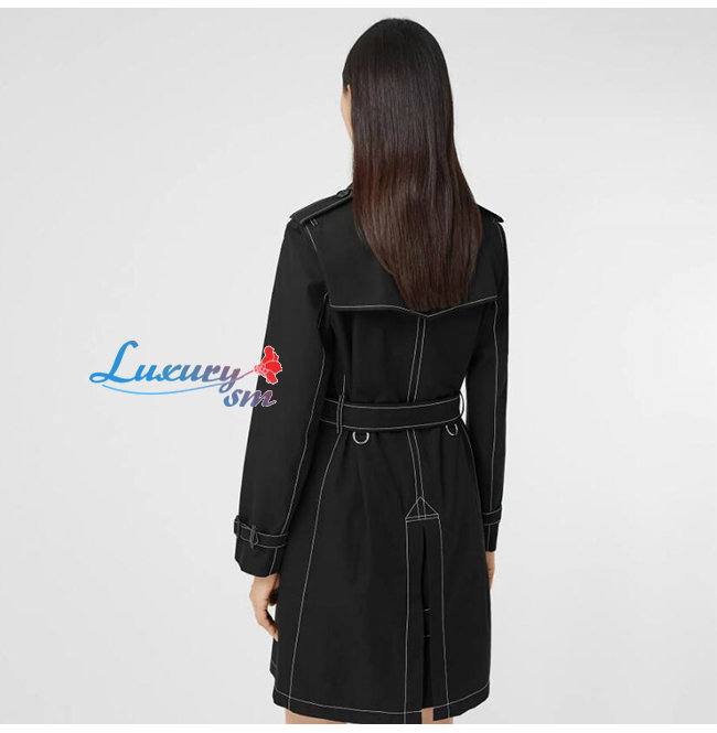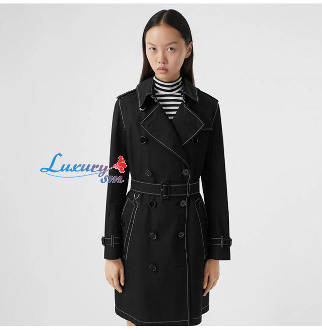 BURBERRY-80262231 버버리 블랙 톱스티치 트로피컬 개버딘 트렌치코트