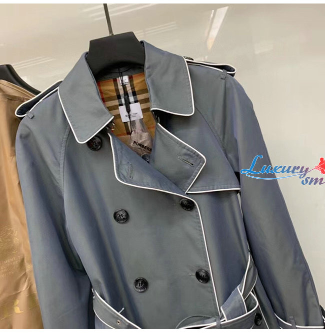 BURBERRY-80295831 버버리 그레이 파이핑 코튼 개버딘 트렌치코트
