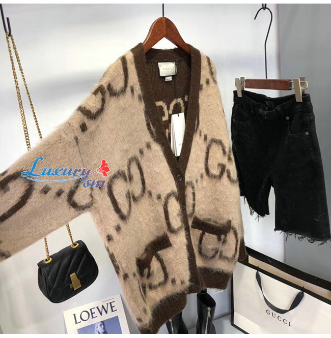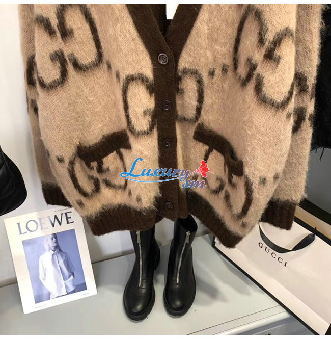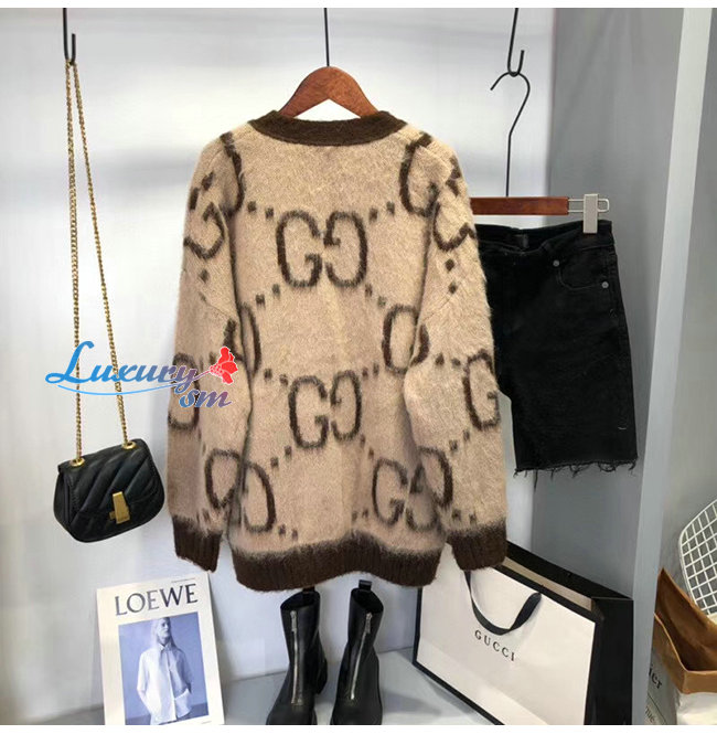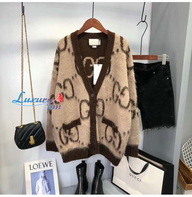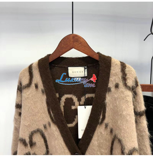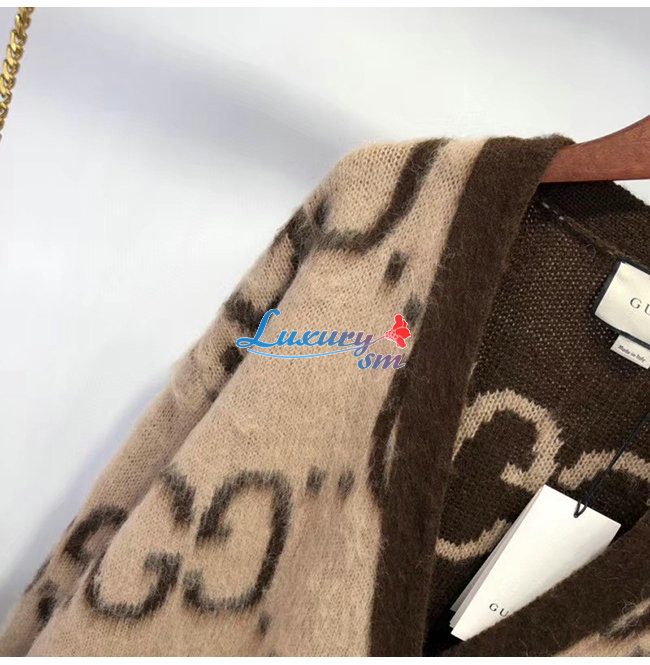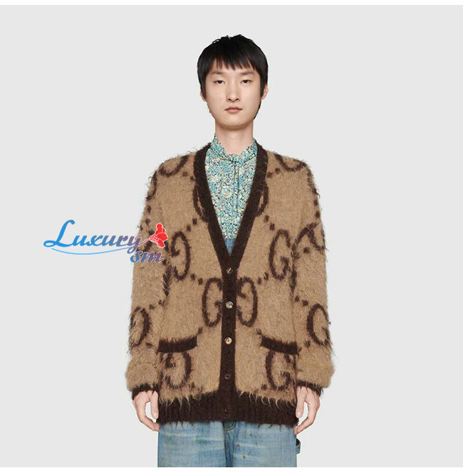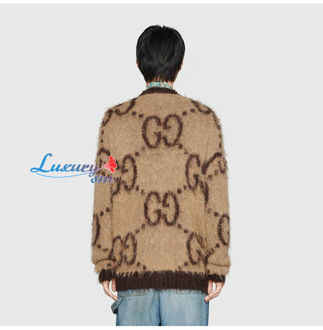 GUCCI-635160 2254 구찌 베이지/브라운 리버서블 GG 모헤어 울 가디건