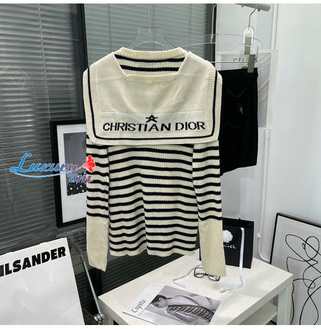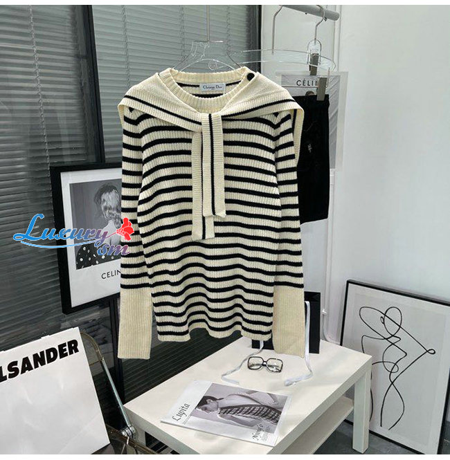 DIOR-154W01 디올 아이보리 울 니트 탈착식 칼라 마리니에르 스웨터