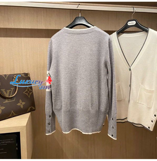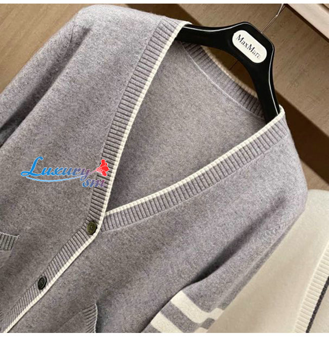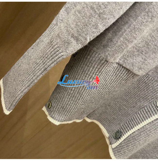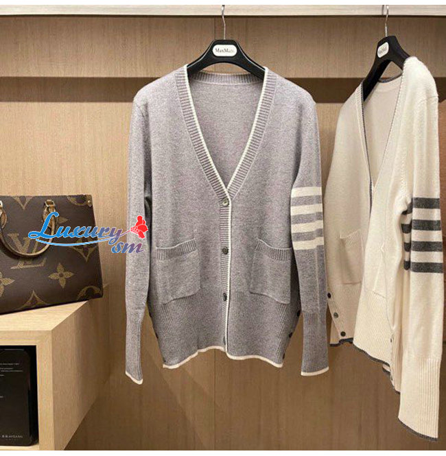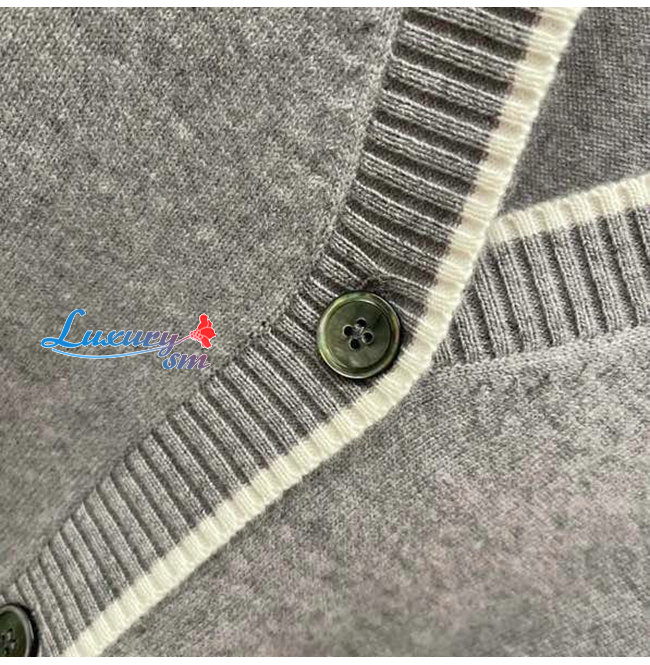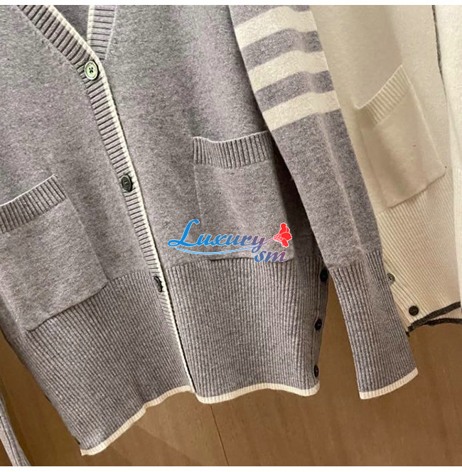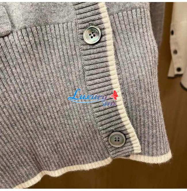 THOM BROWNE-121513 톰 브라운 그레이 니트 코튼 스트라이프 장식 가디건 여성용