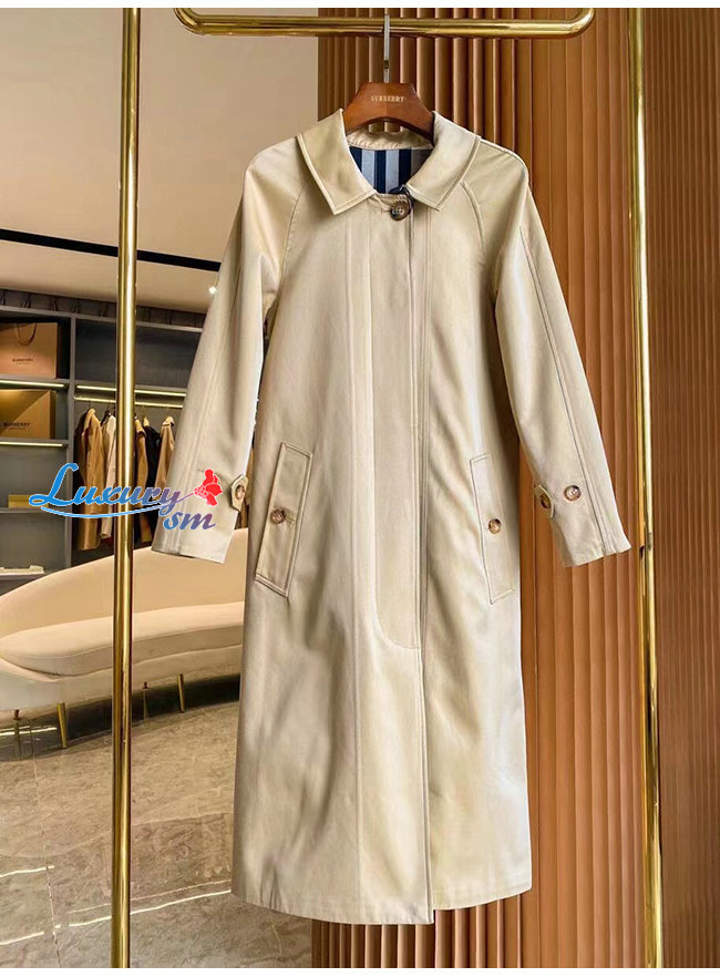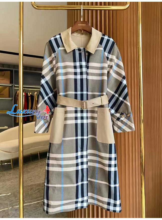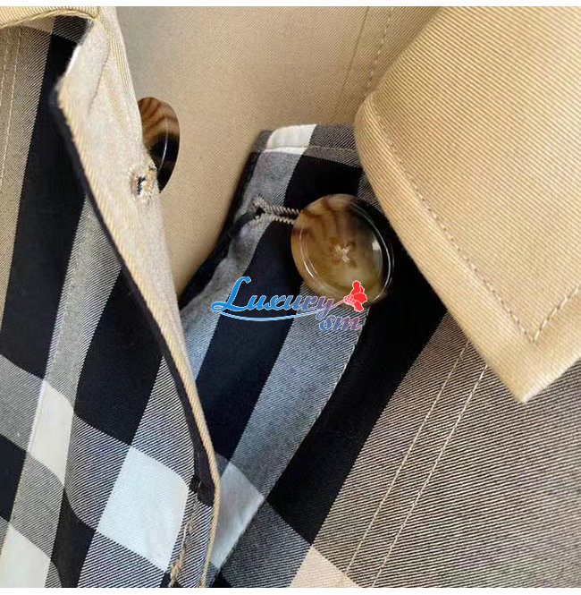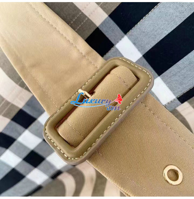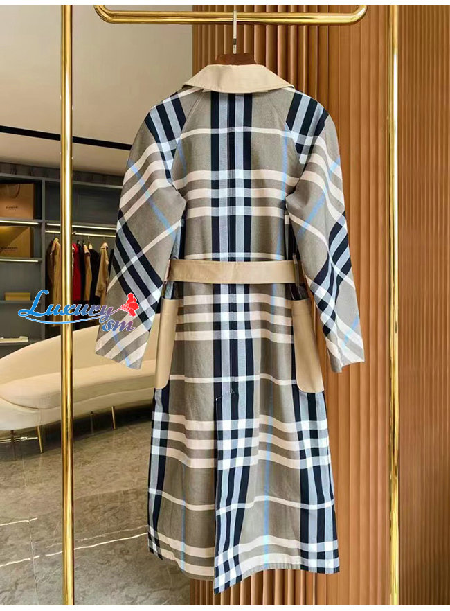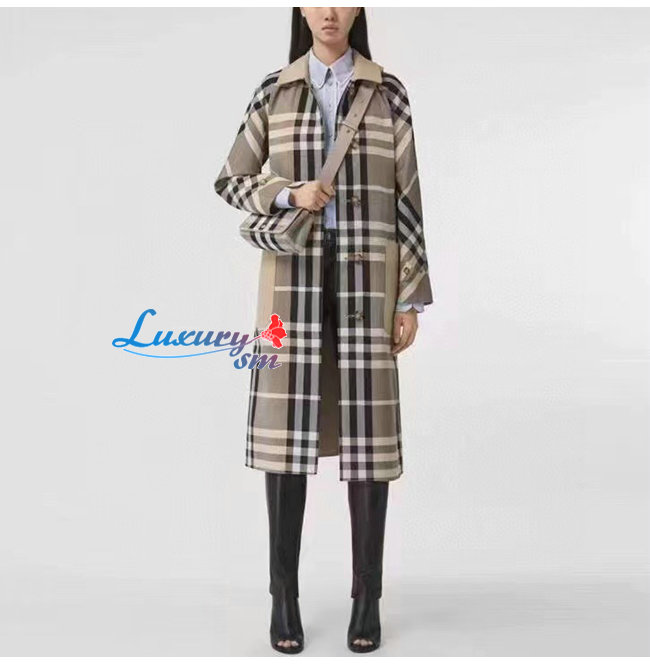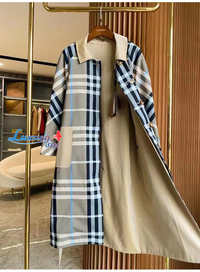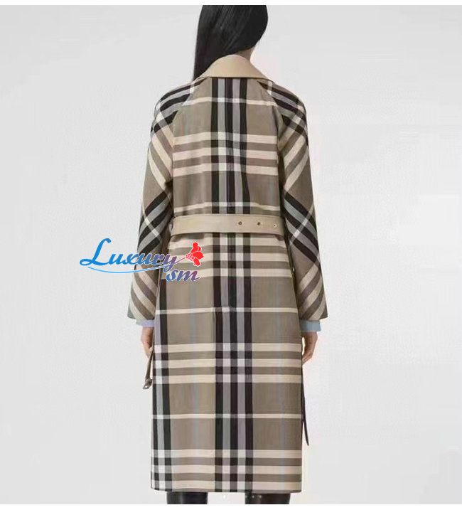 BURBER**-02266 버버리 그레이/베이지 코튼 체크 무늬 양면 트렌치코트 여성용