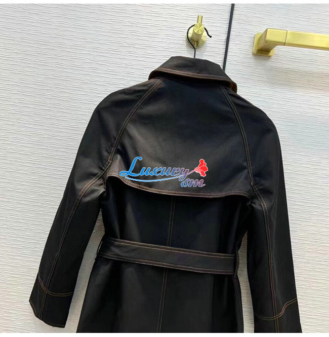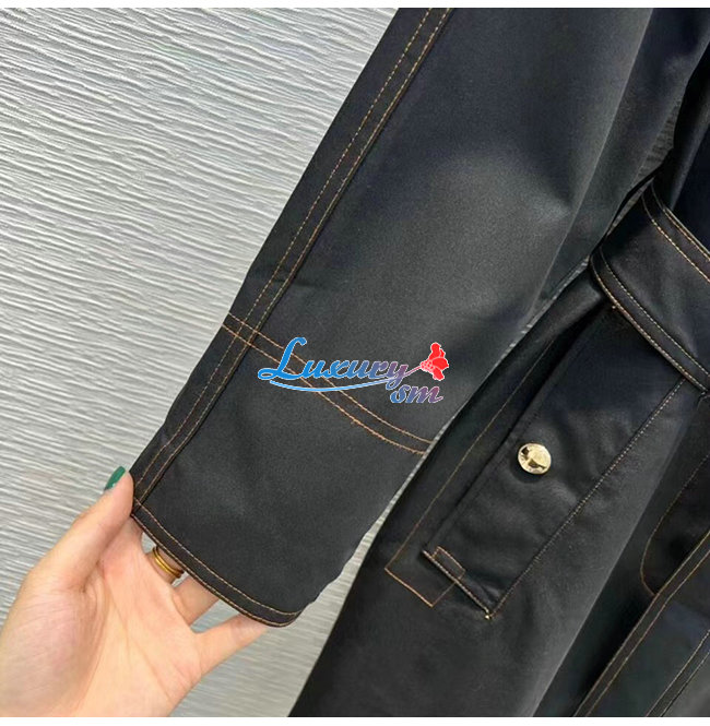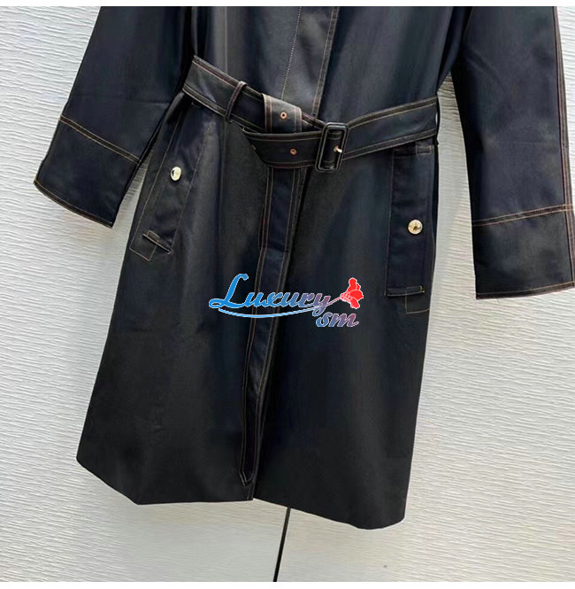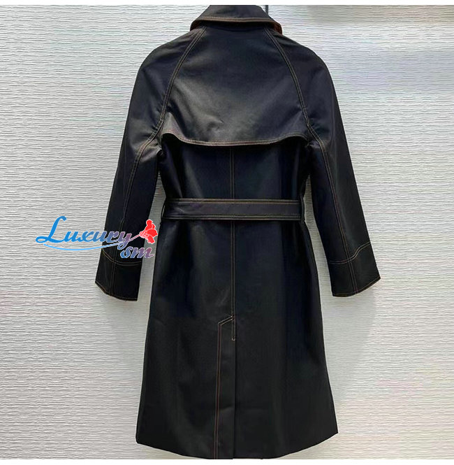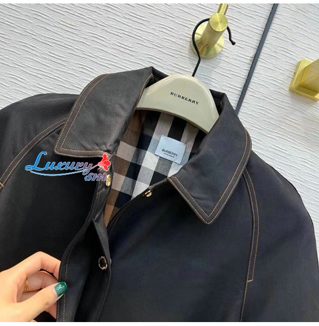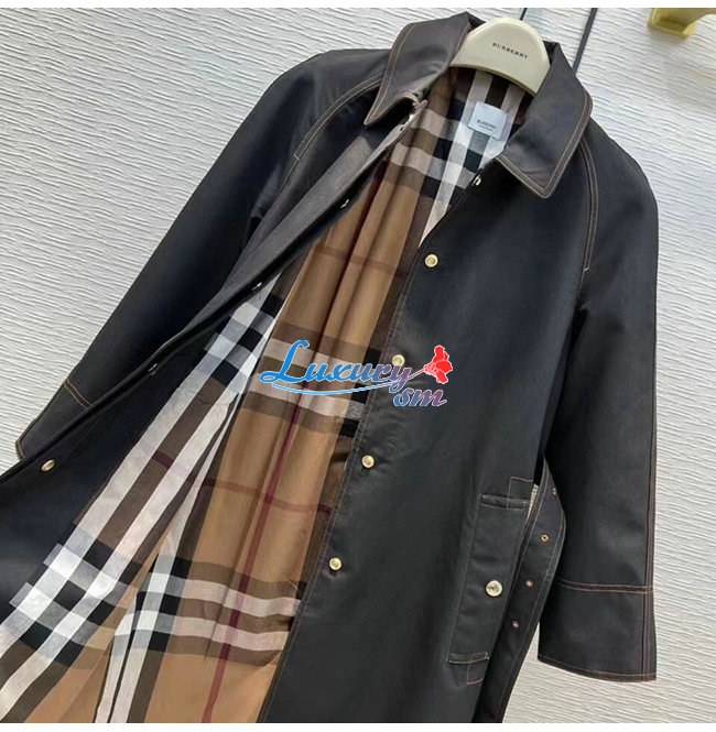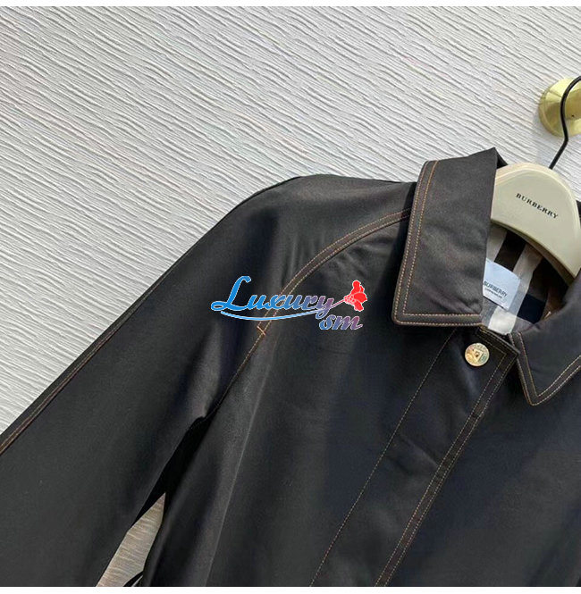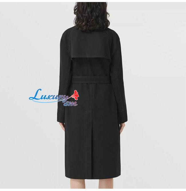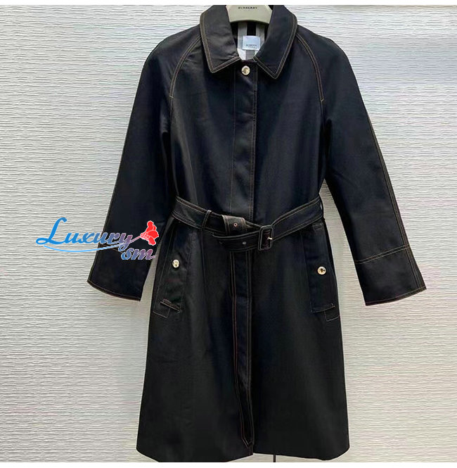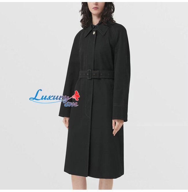 BURBER**-80503671 버버리 블랙 코튼 개버딘 벨트 카 코트