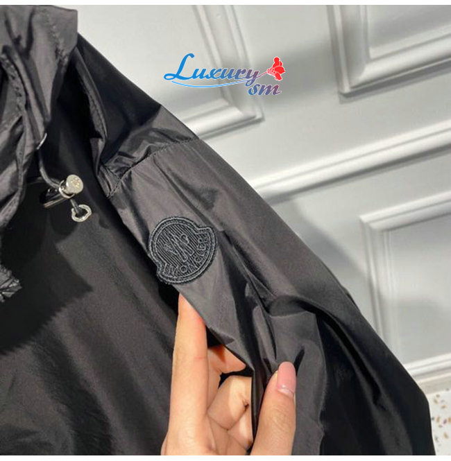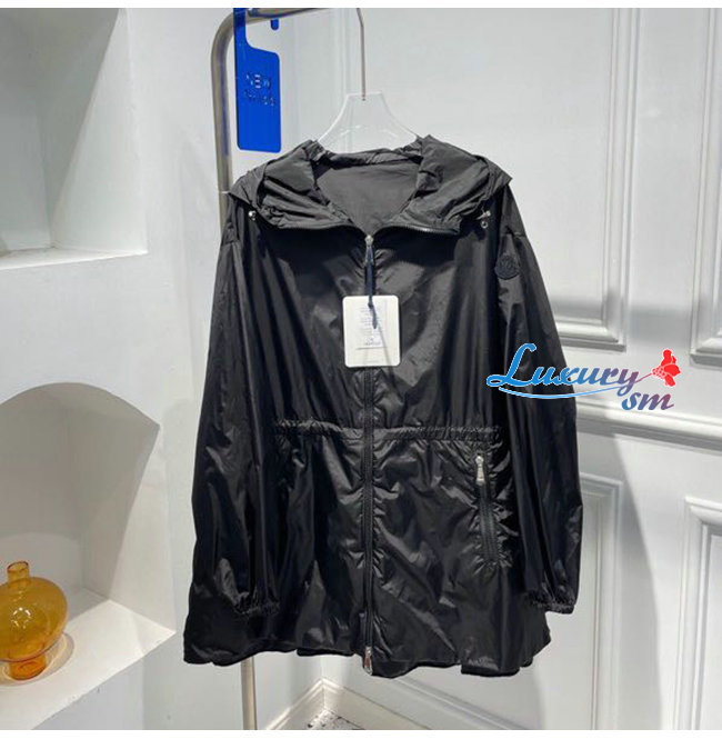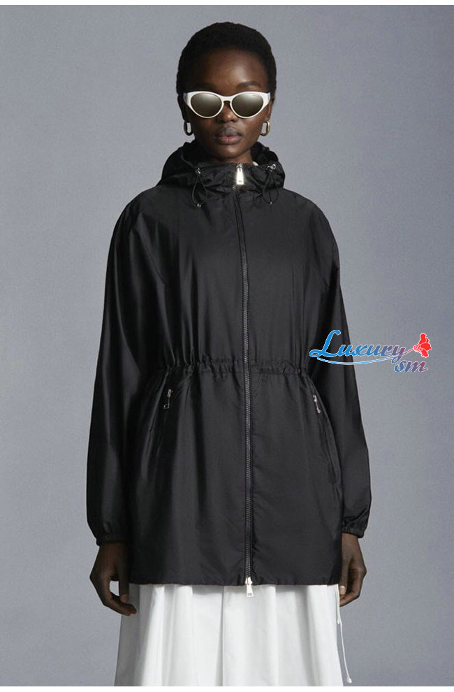 MONCL**-03299 몽클레어 블랙 나일론 바람막이 후드 재킷 여성용