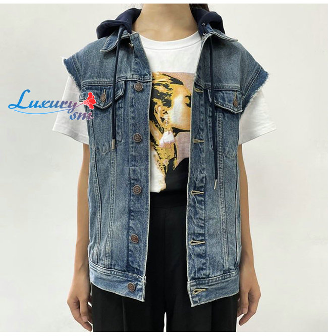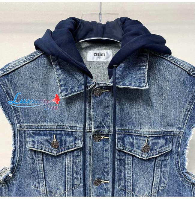 CELINE-09021 셀린느 블루 데님 후드 조끼 남여공용