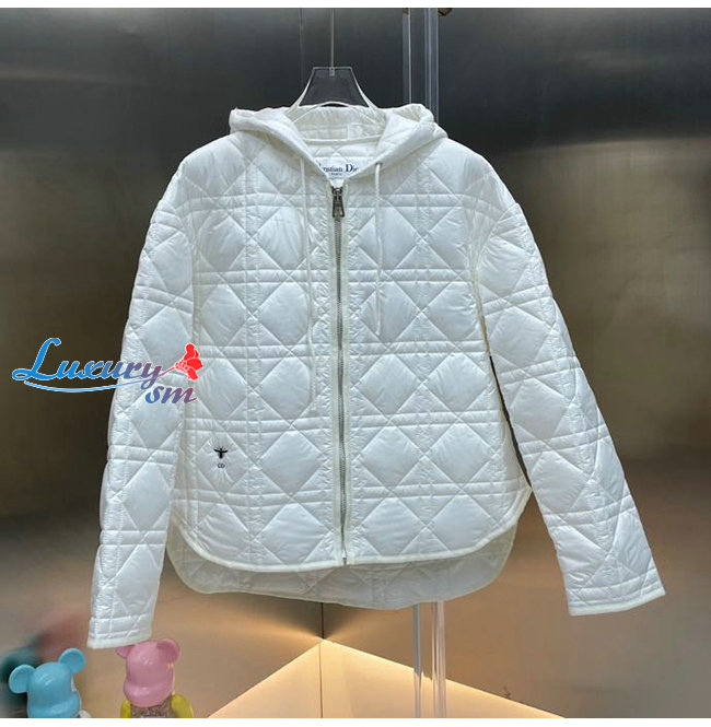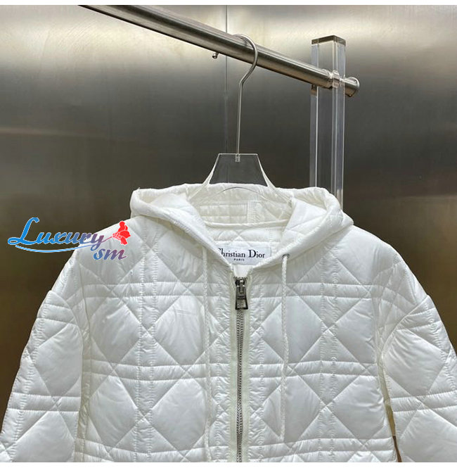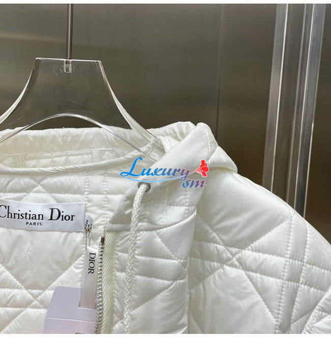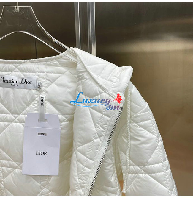 DIOR-247C47 디올 화이트 매크로까나쥬 후드 피코트 여성용