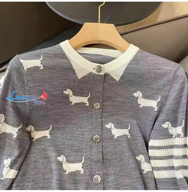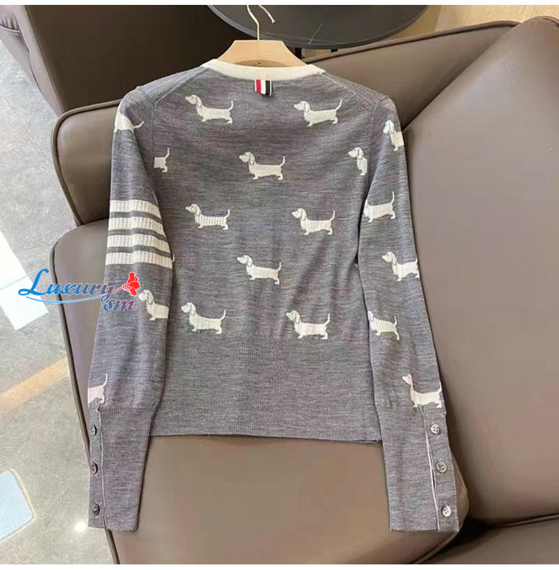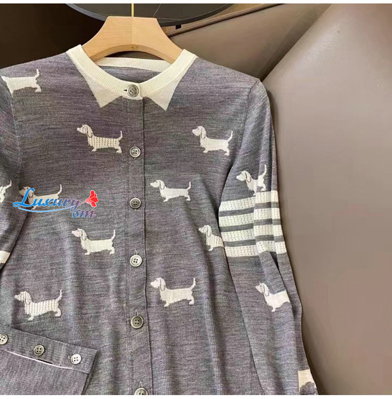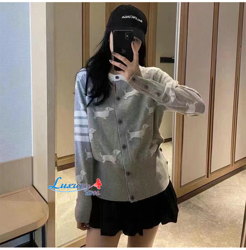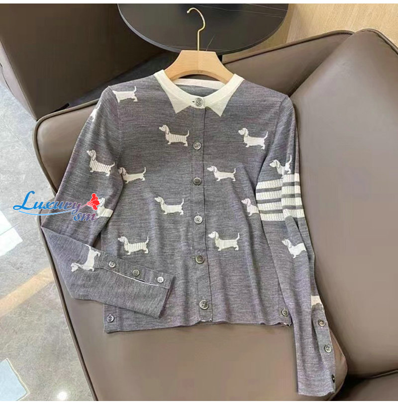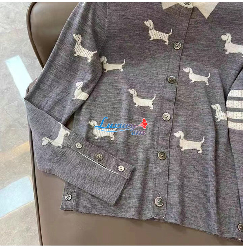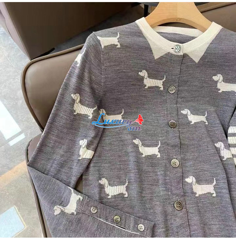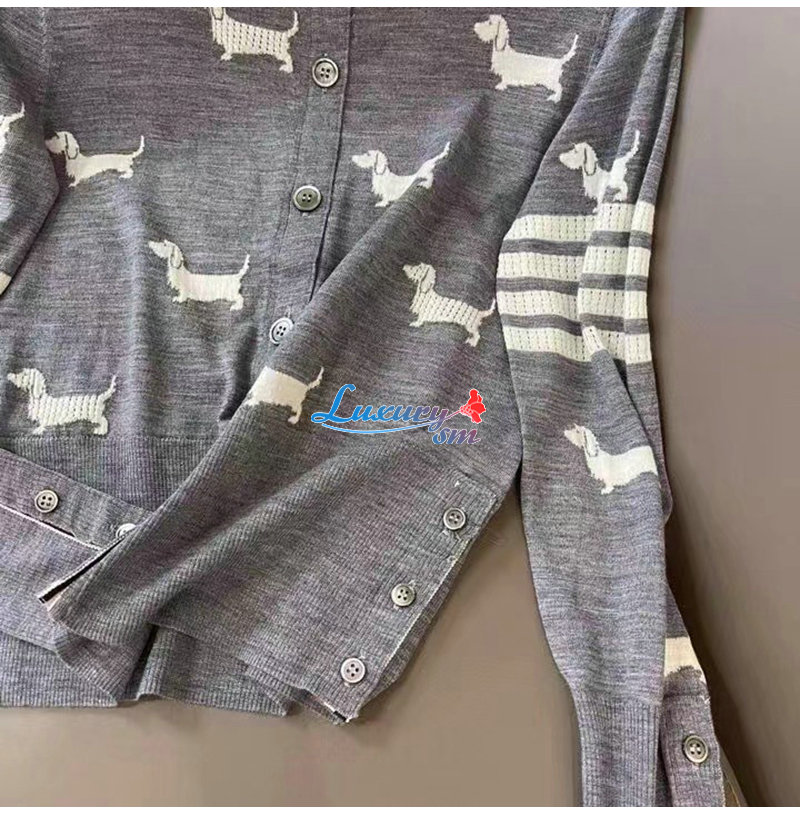 THOM BROWNE-02202 톰 브라운 그레이 강아지 그래픽 장식 가디건 여성용