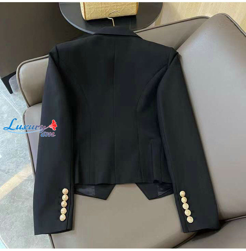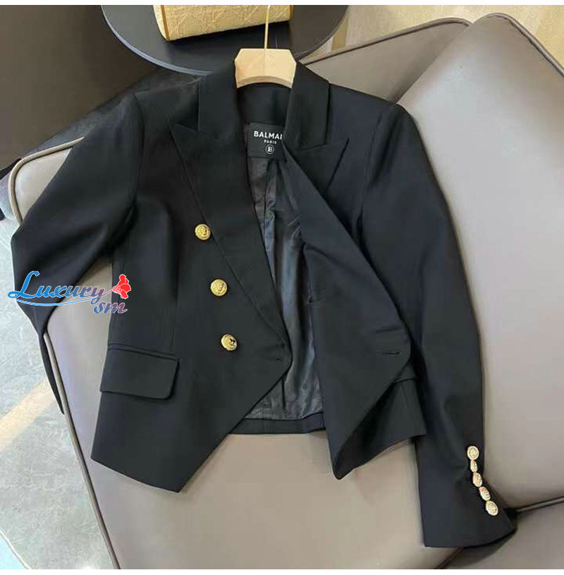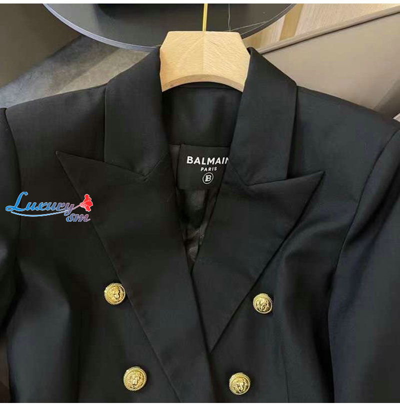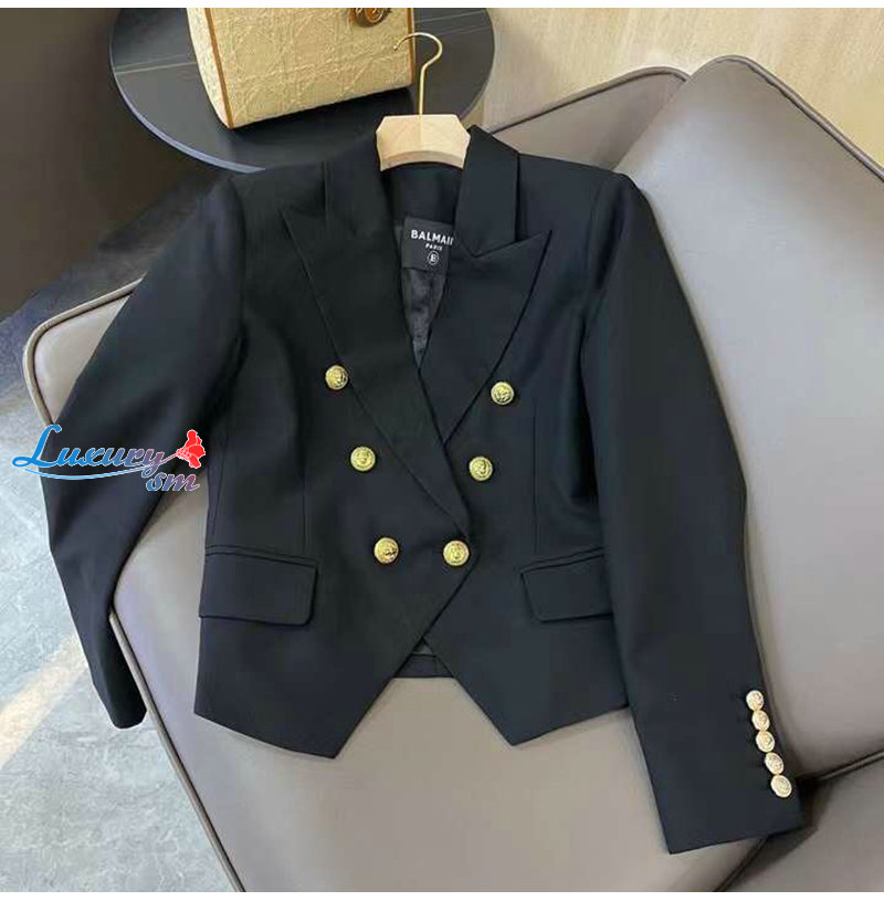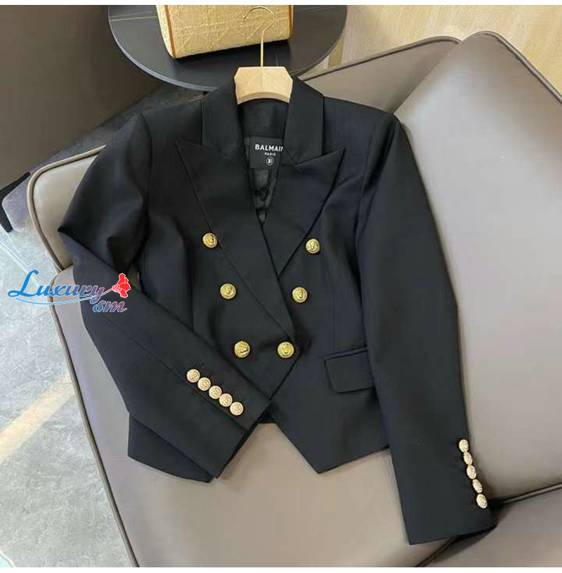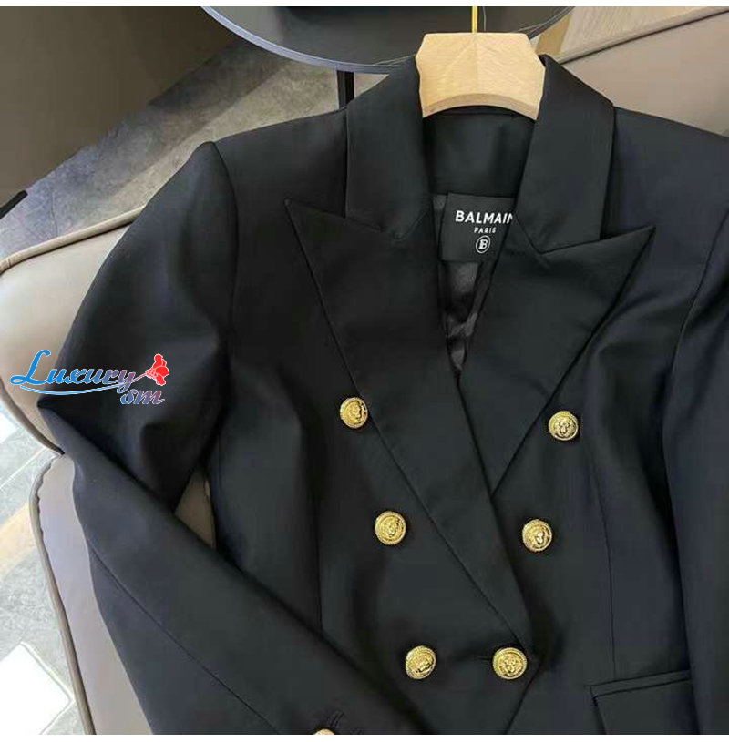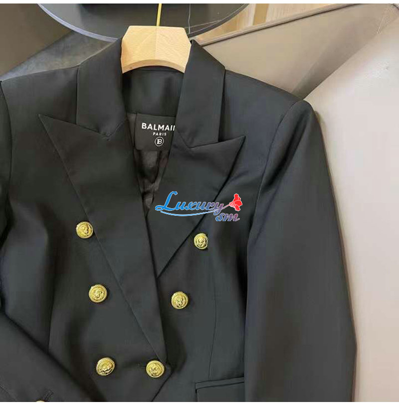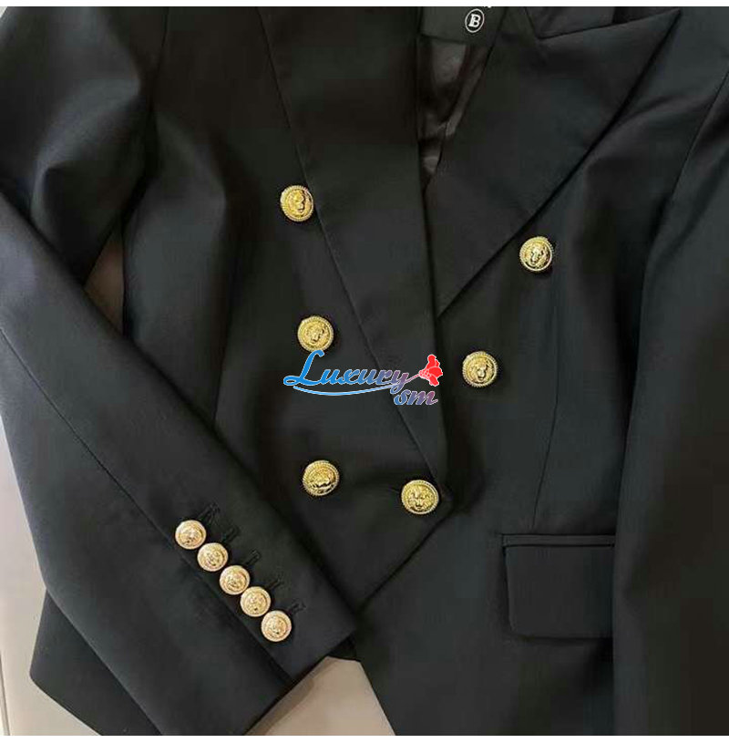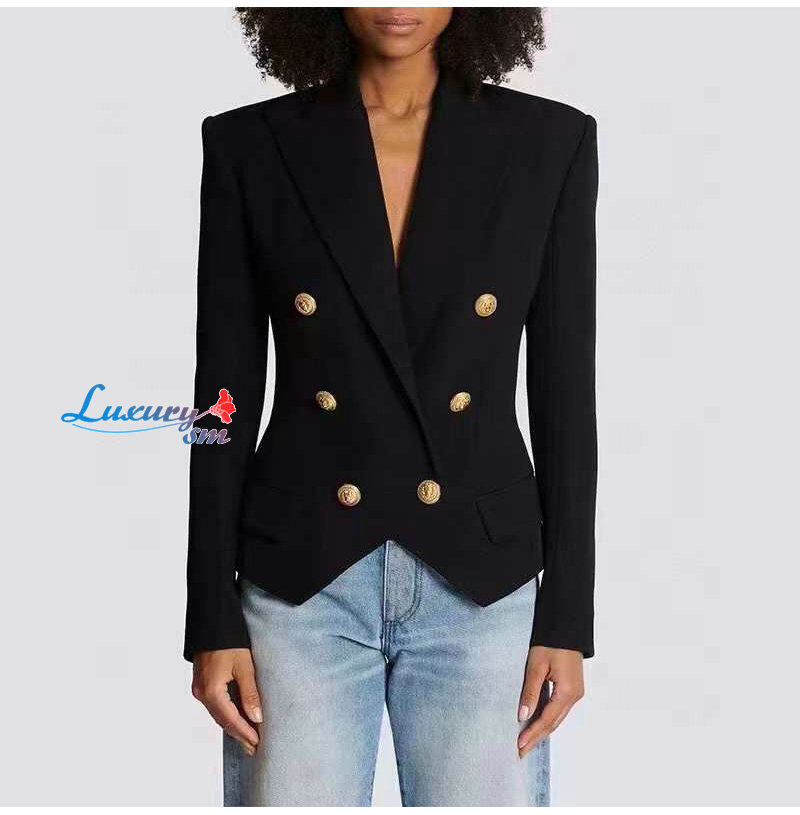 BALMAIN-YF0SG075 발망 블랙 울 더블 브레스트 블레이저 여성용