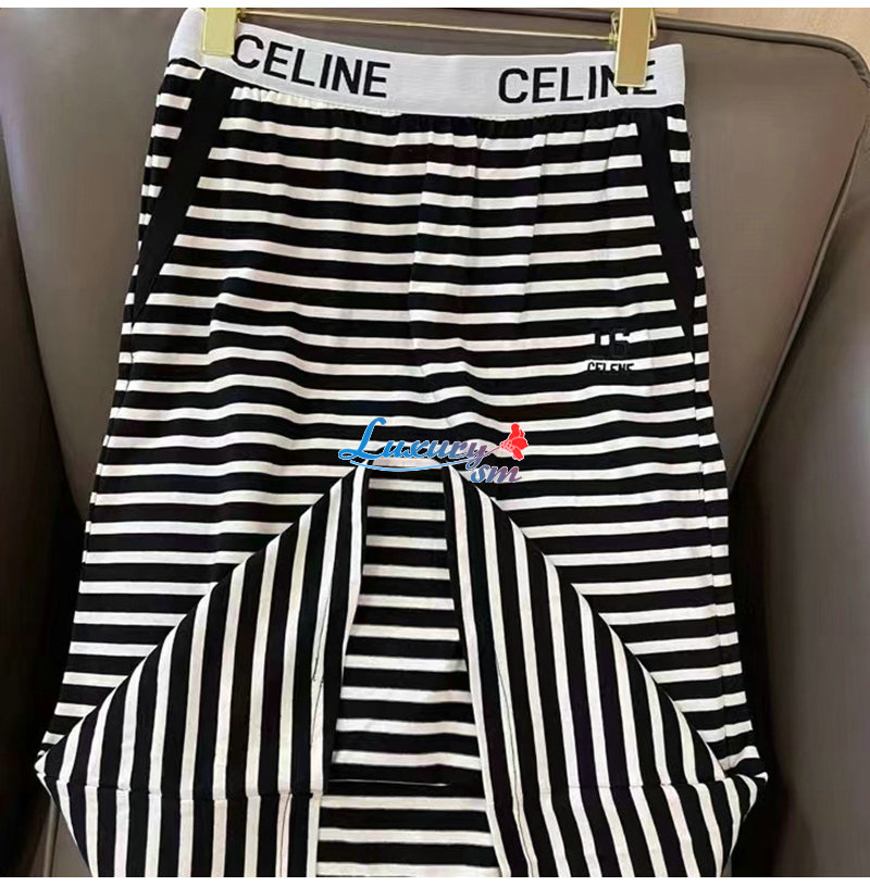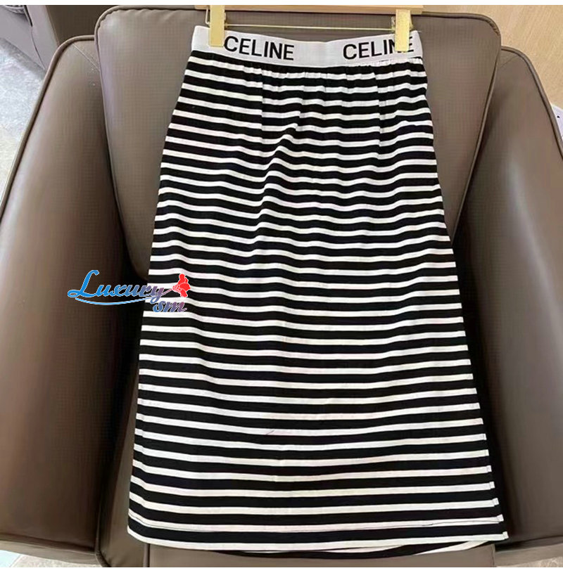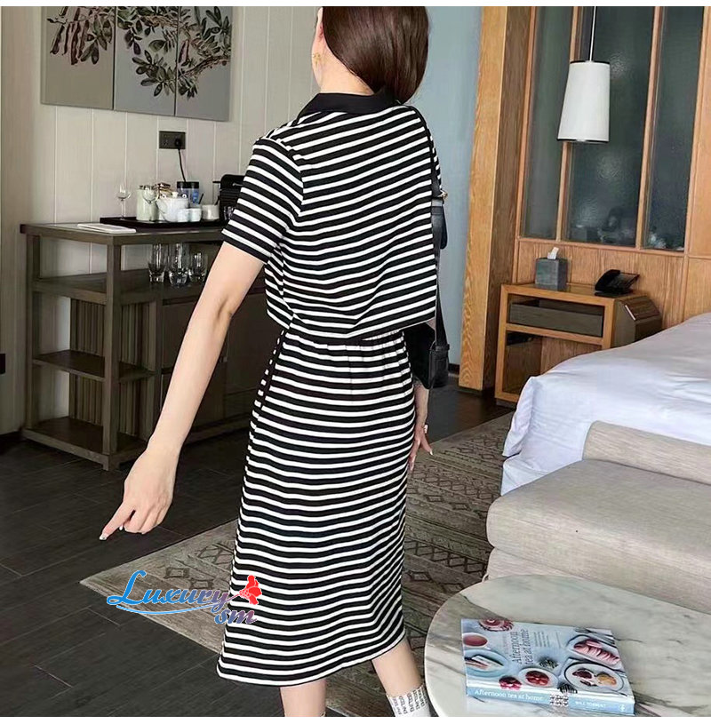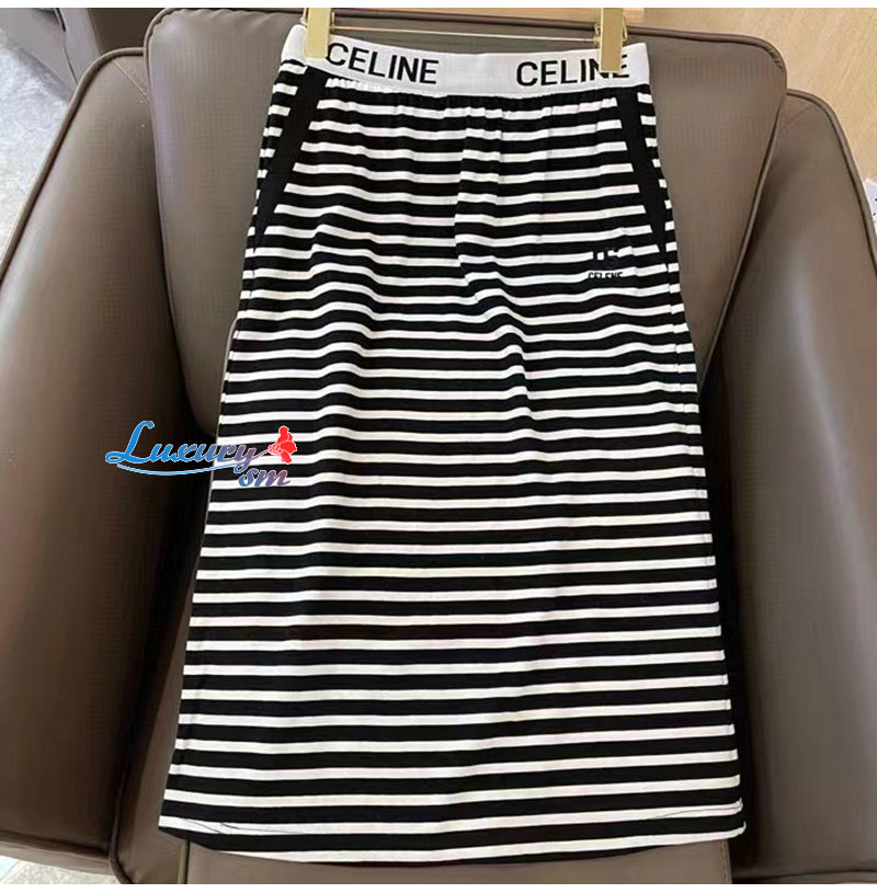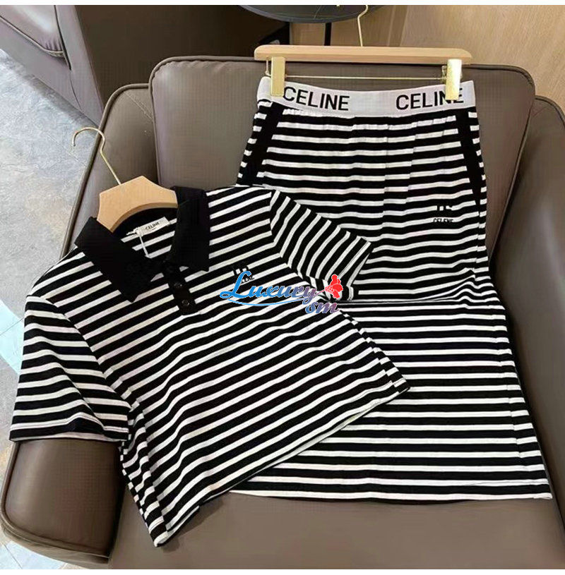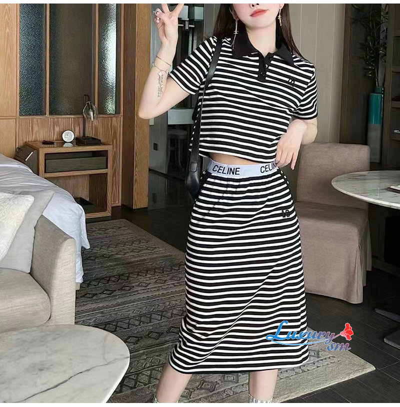 CELINE-02288 셀린느 블랙 스트라이프 장식 투피스