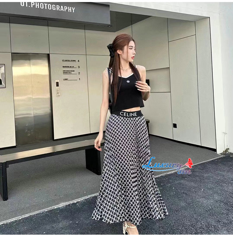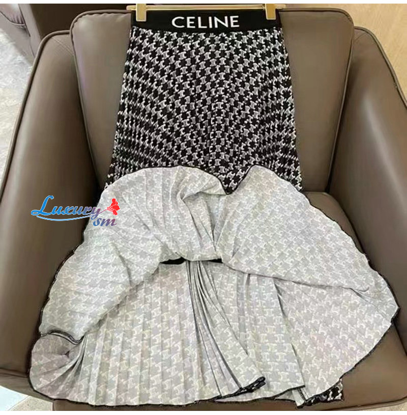 CELINE-03185 셀린느 블랙/화이트 코튼 스커트