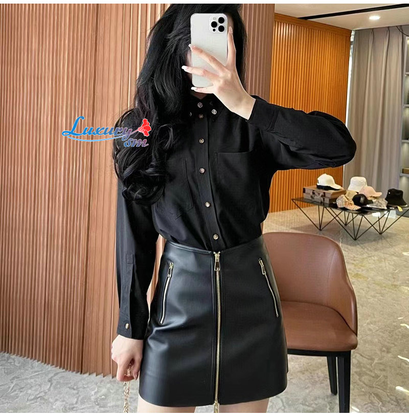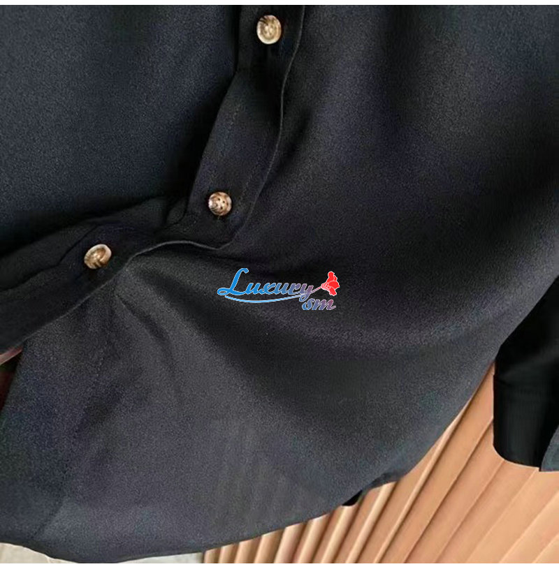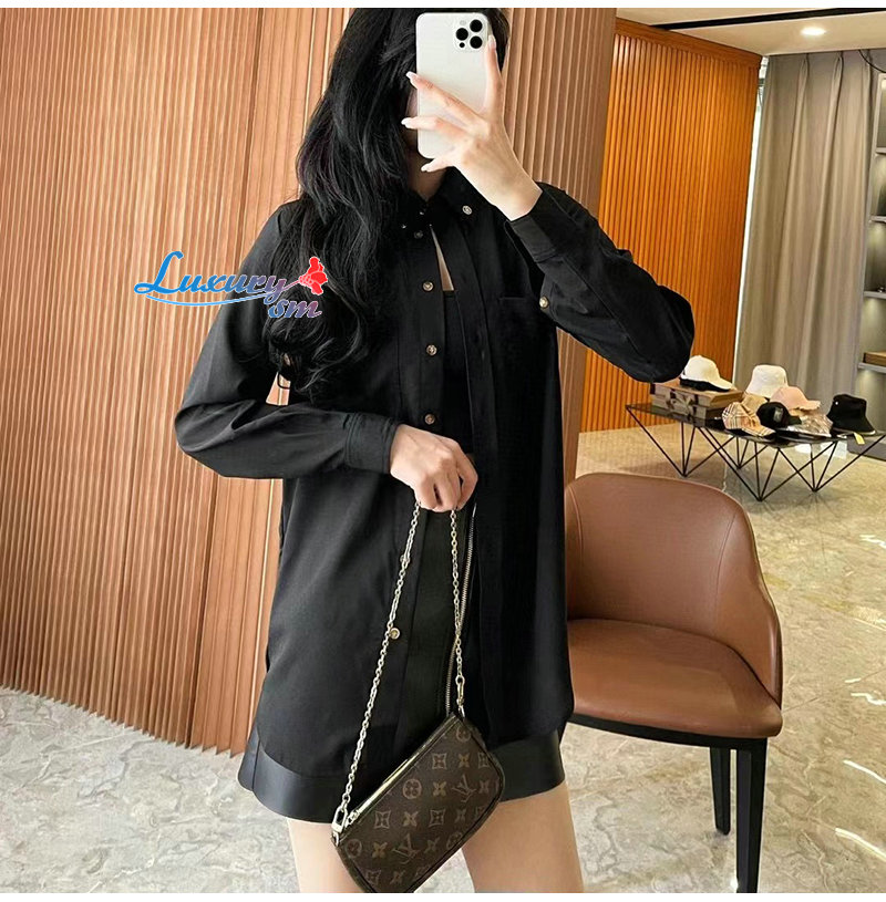 BURBERRY-80554461 버버리 블랙 모노그램 모티프 실크 셔츠 여성용