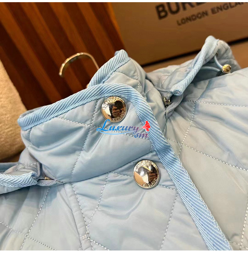 BURBERRY-80727991 버버리 블루 다이아몬드 퀼팅 나일론 크롭 재킷 여성용
