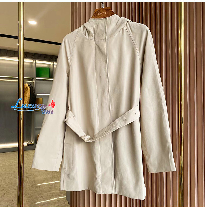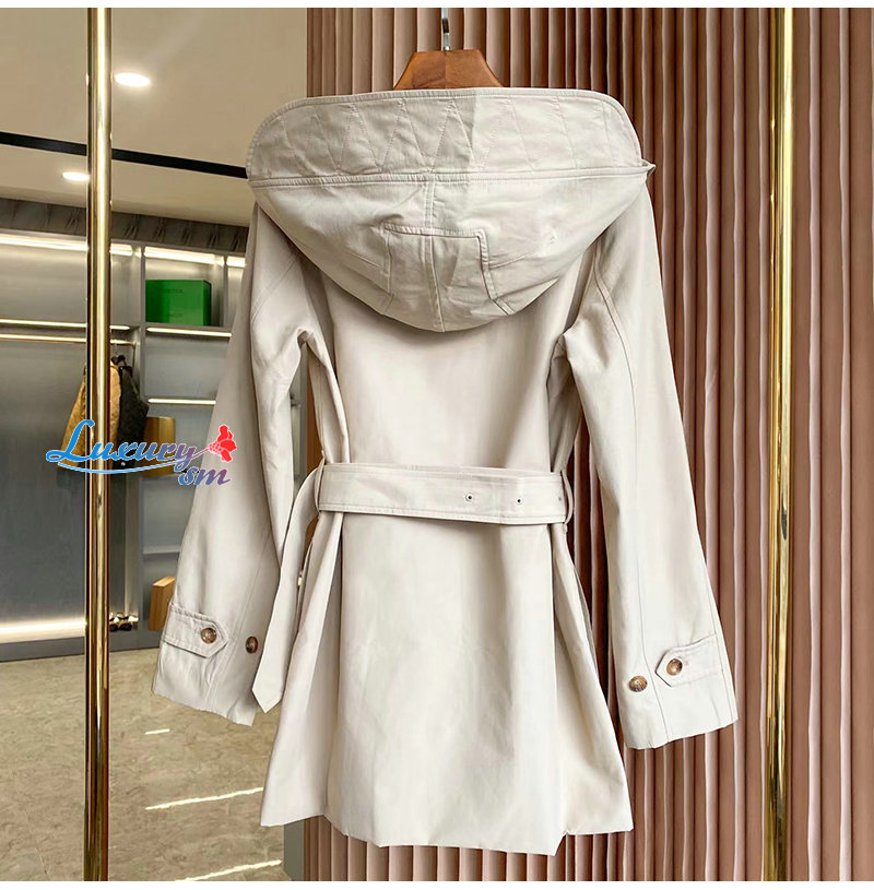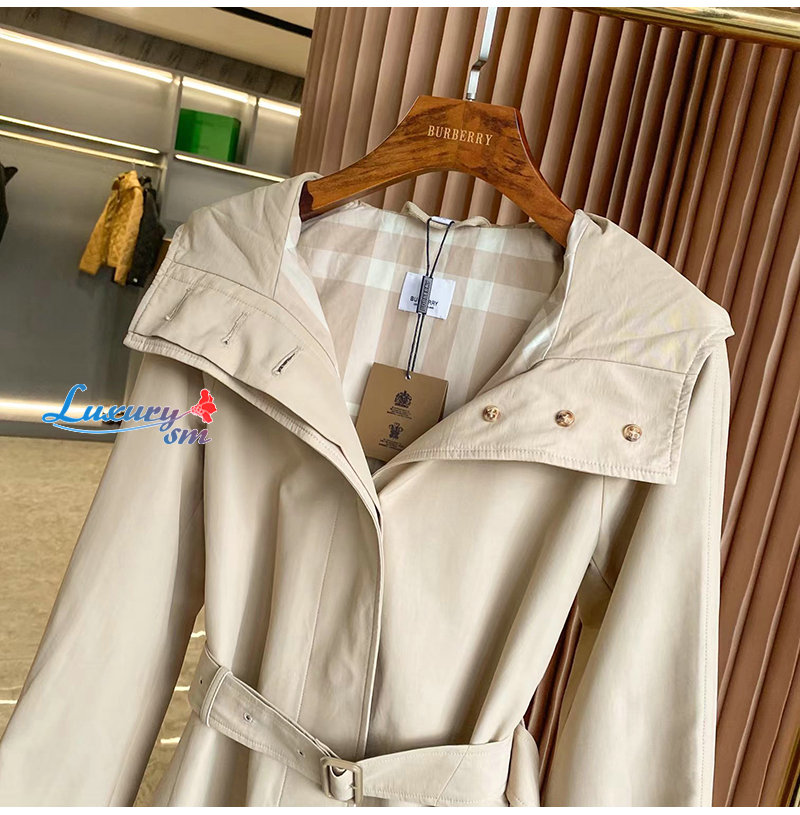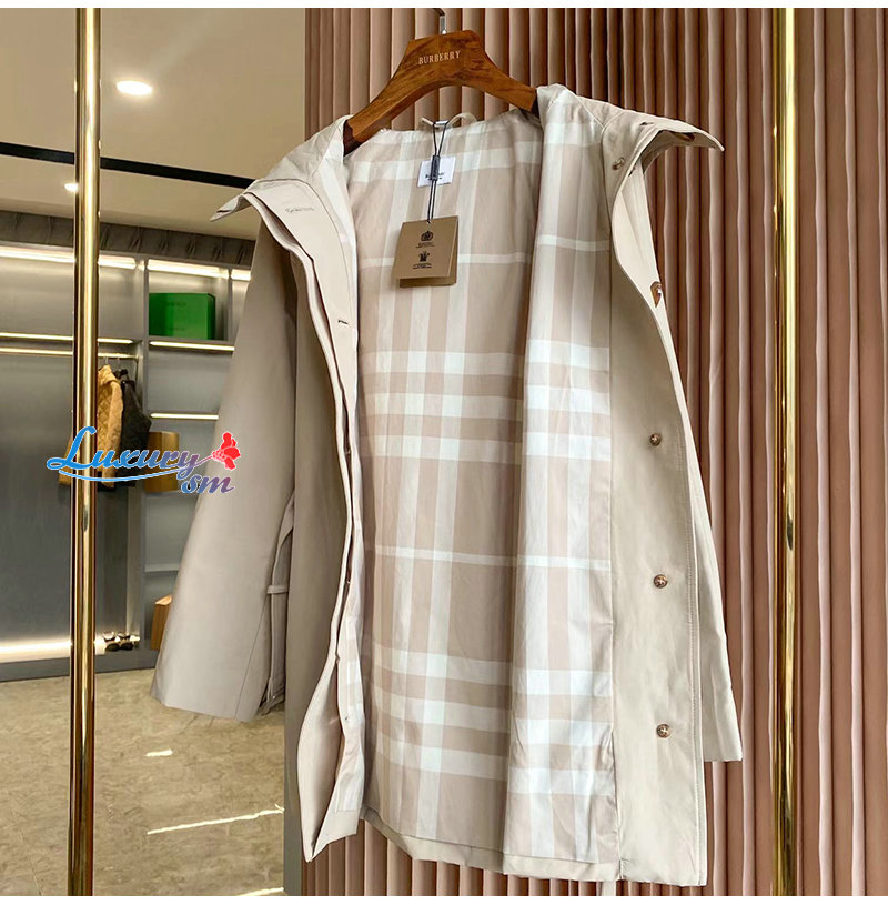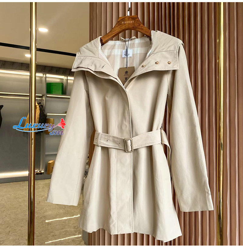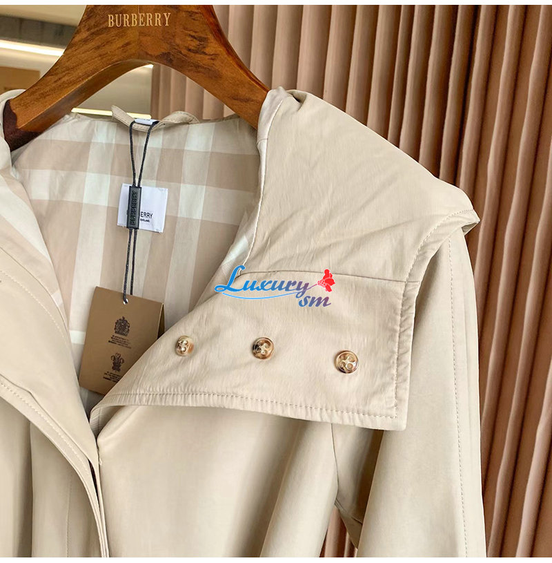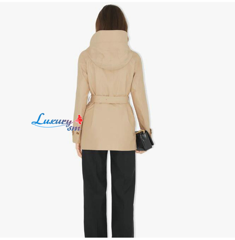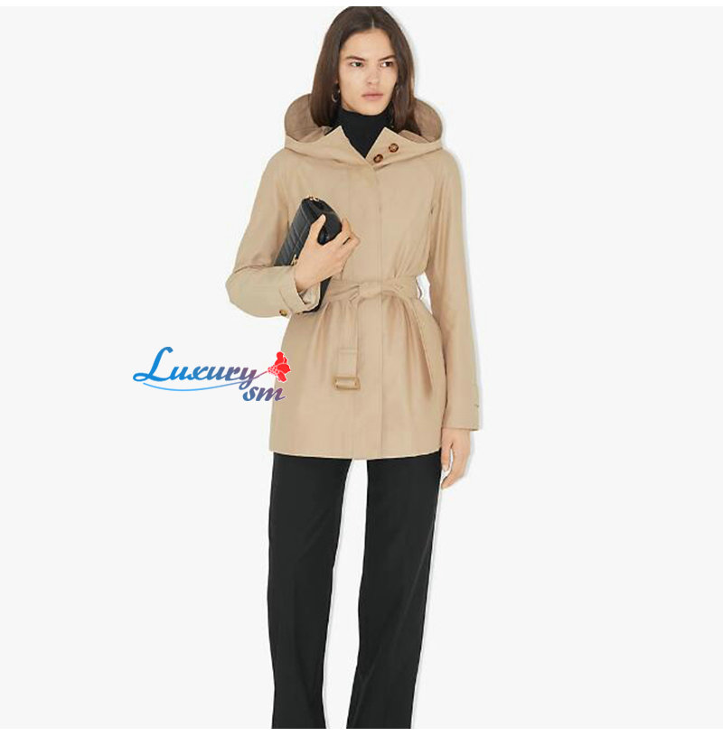 BURBERRY-80658051 버버리 베이지 테크니컬 코튼 파이유 후드 카 코트 여성용