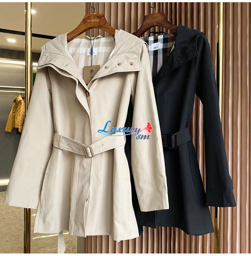 BURBERRY-80658031 버버리 블랙 테크니컬 코튼 파이유 후드 카 코트 여성용 가격 : 380,000원