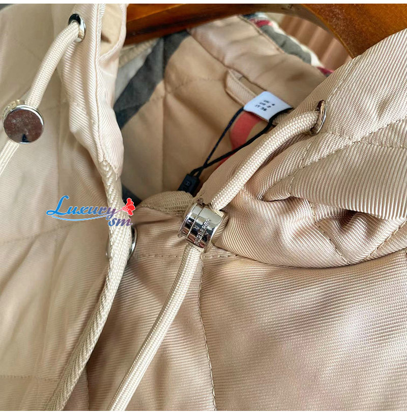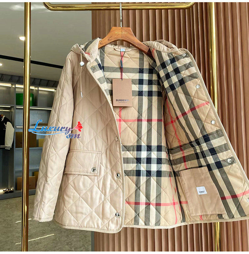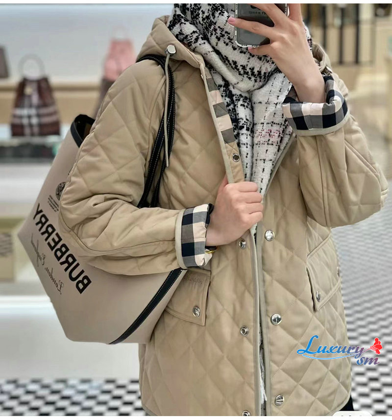 다이아몬드 퀼팅 디자인의 후드 재킷. 버버리 체크