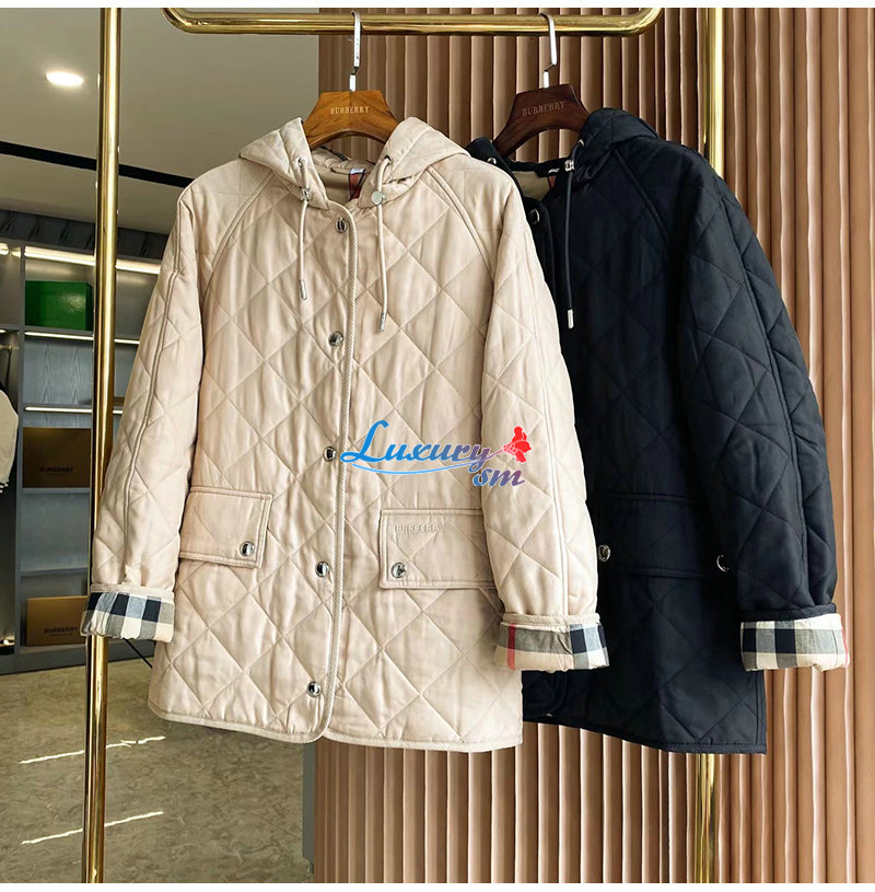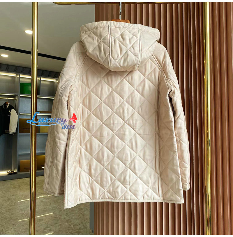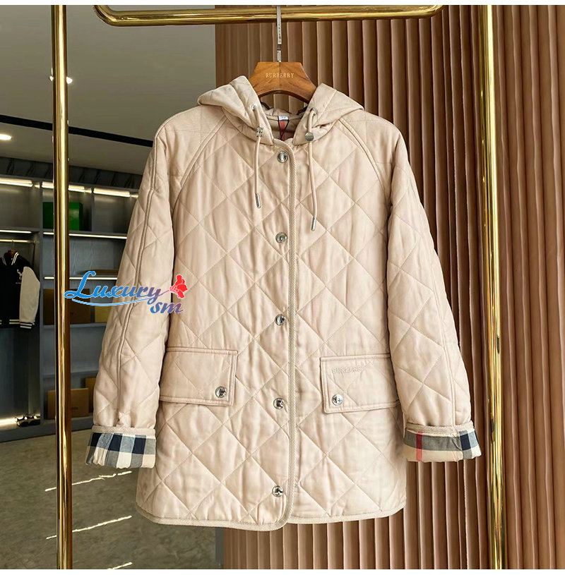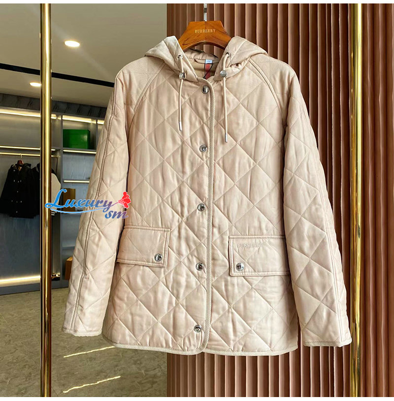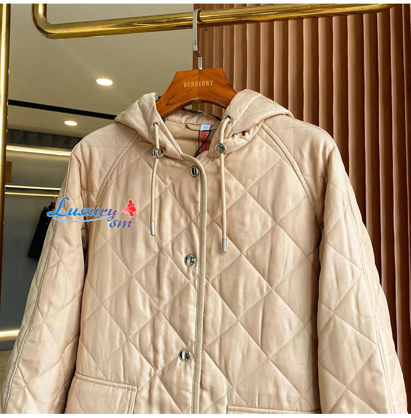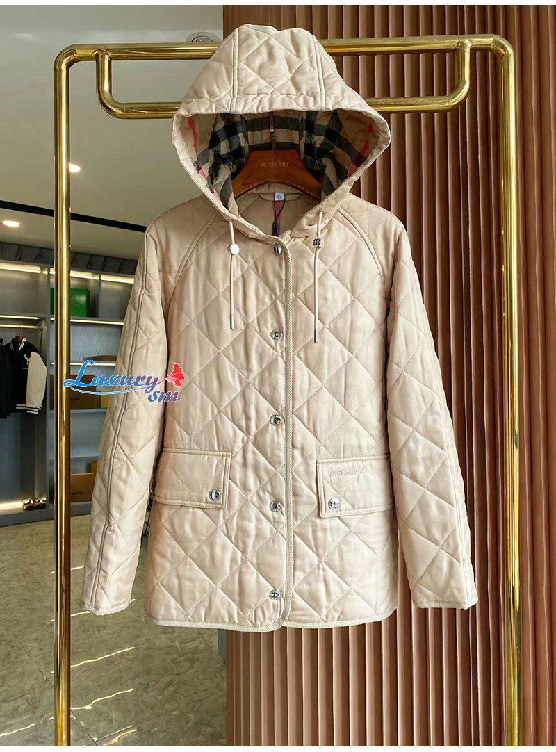 BURBERRY-80647781 버버리 베이지 다이아몬드 퀼팅 체온조절 후드 재킷 여성용