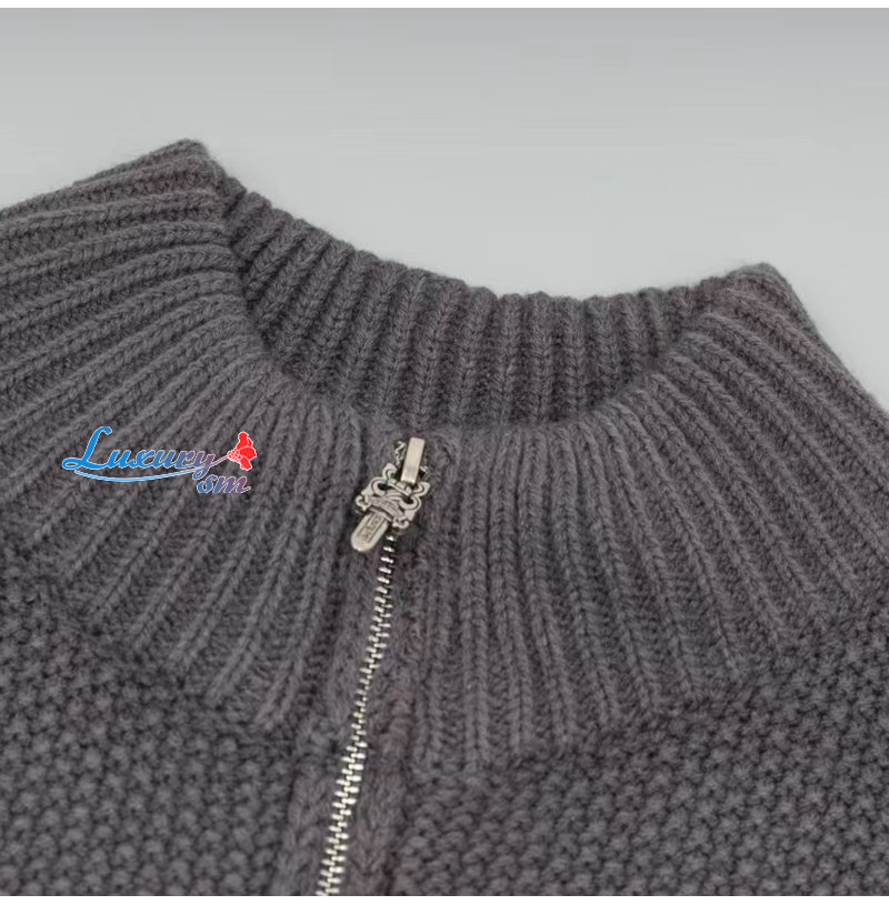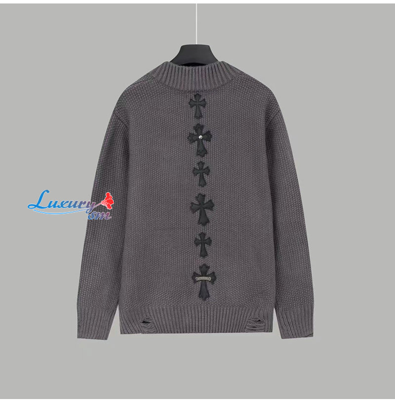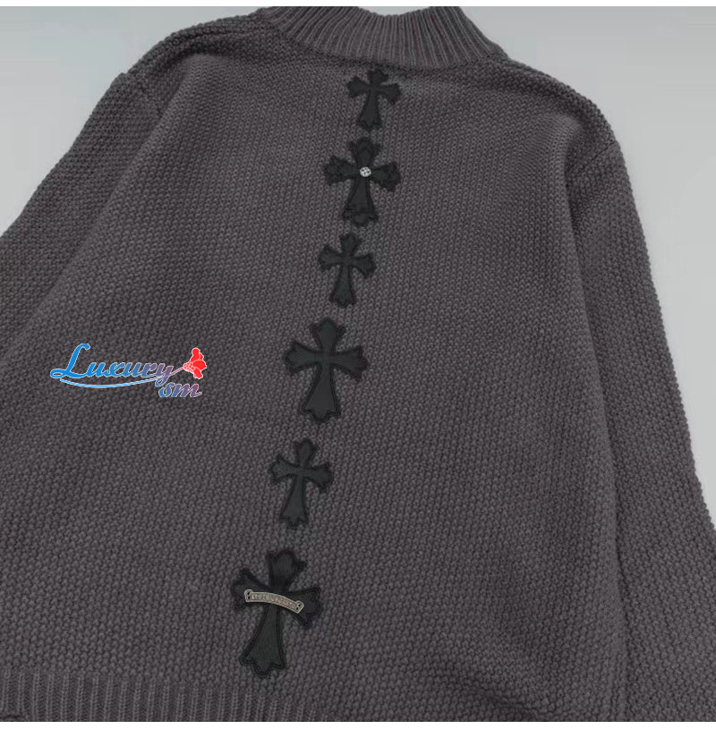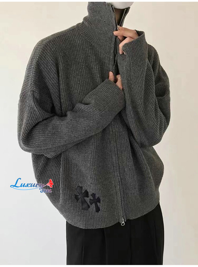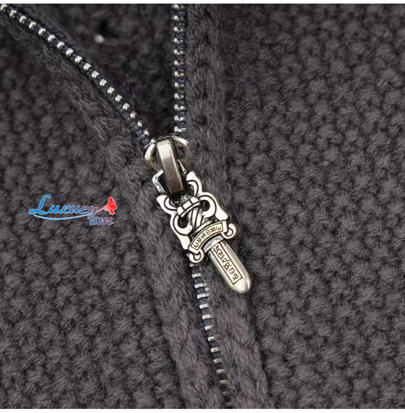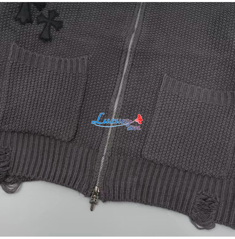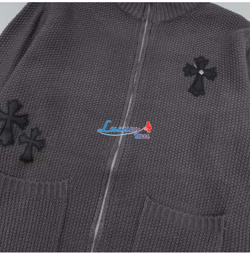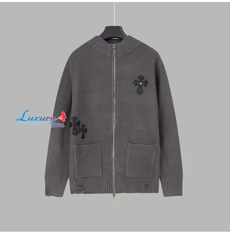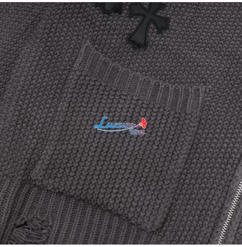 CHROMEHEARTS-10044 크롬하츠 차콜 그레이 아플리케 장식 니트 재킷 남여공용