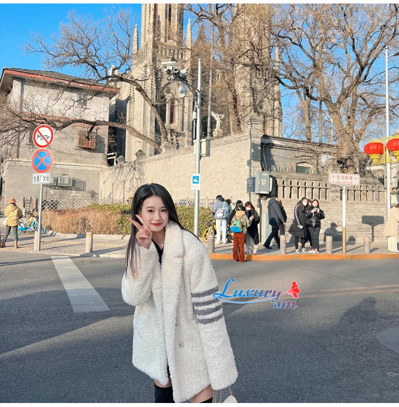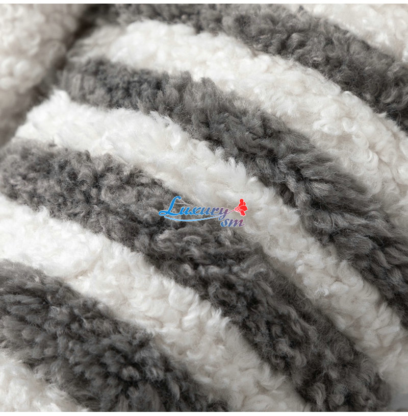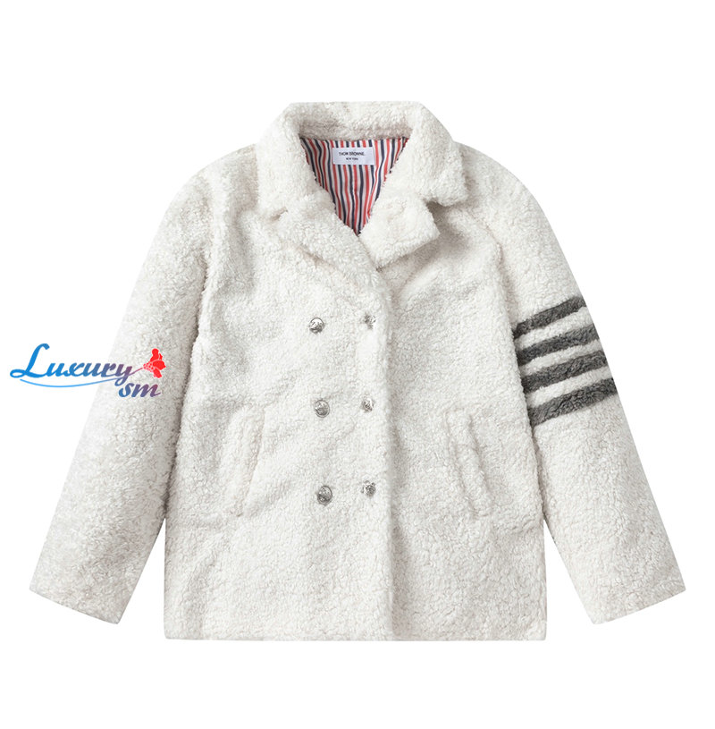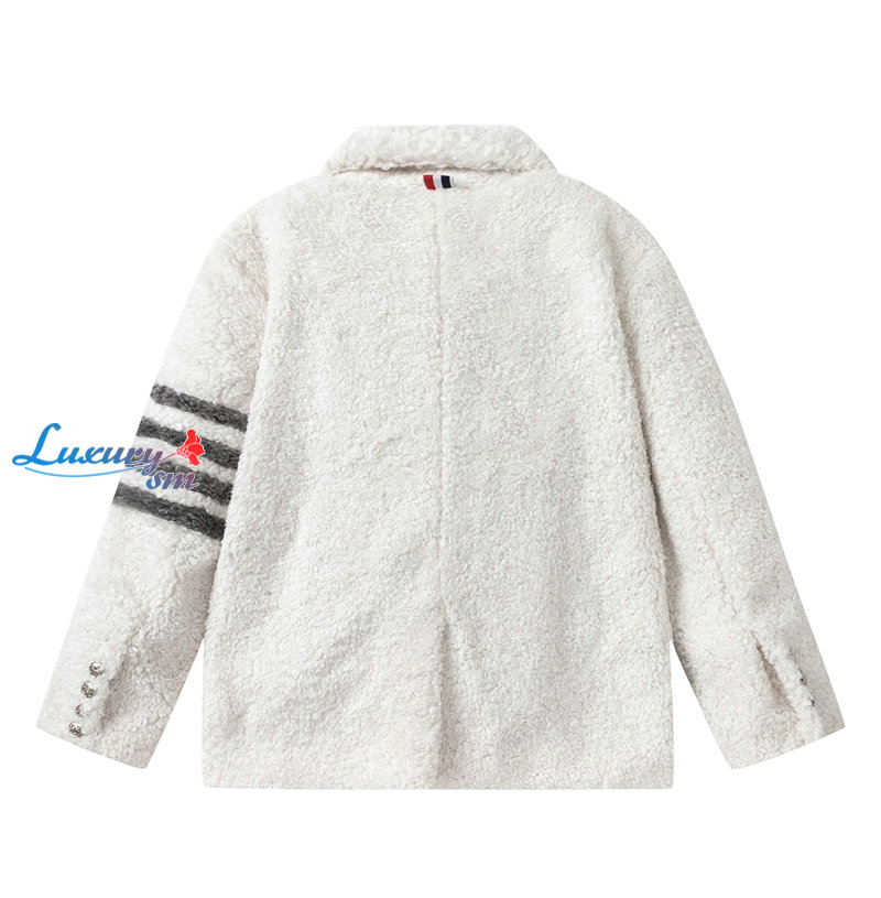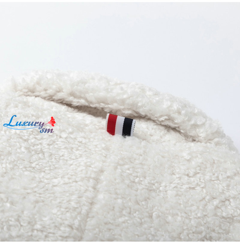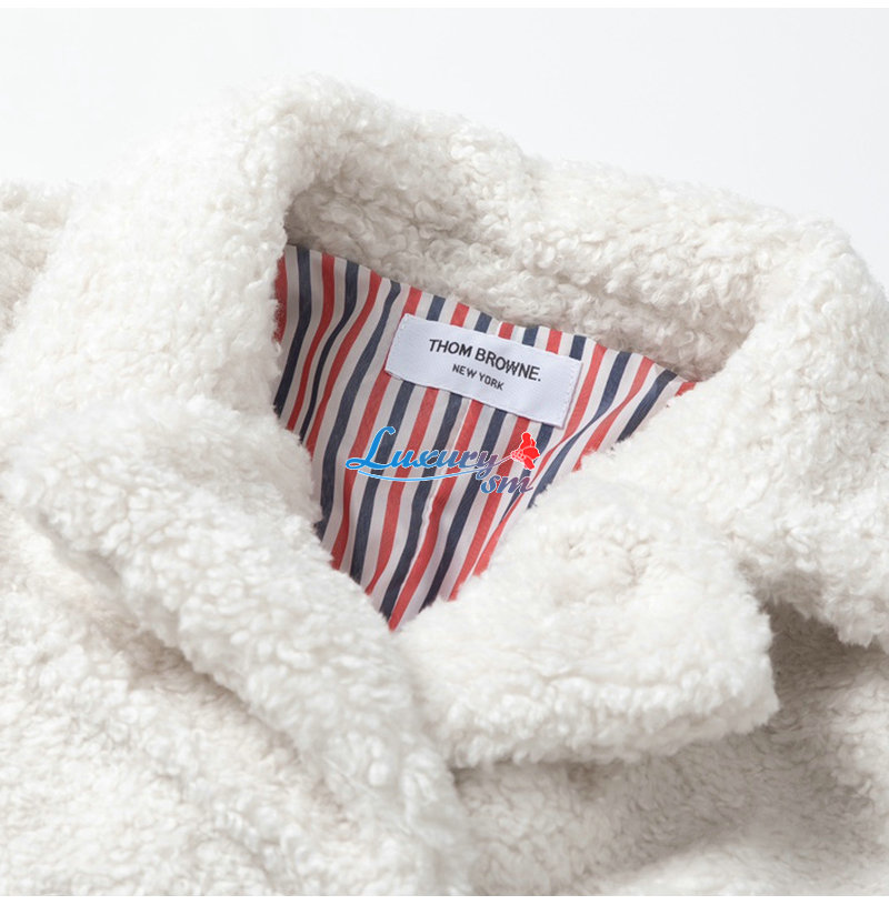 THOM BROWNE-11273 톰 브라운 화이트 스트라이프 장식 시어링 재킷 여성용