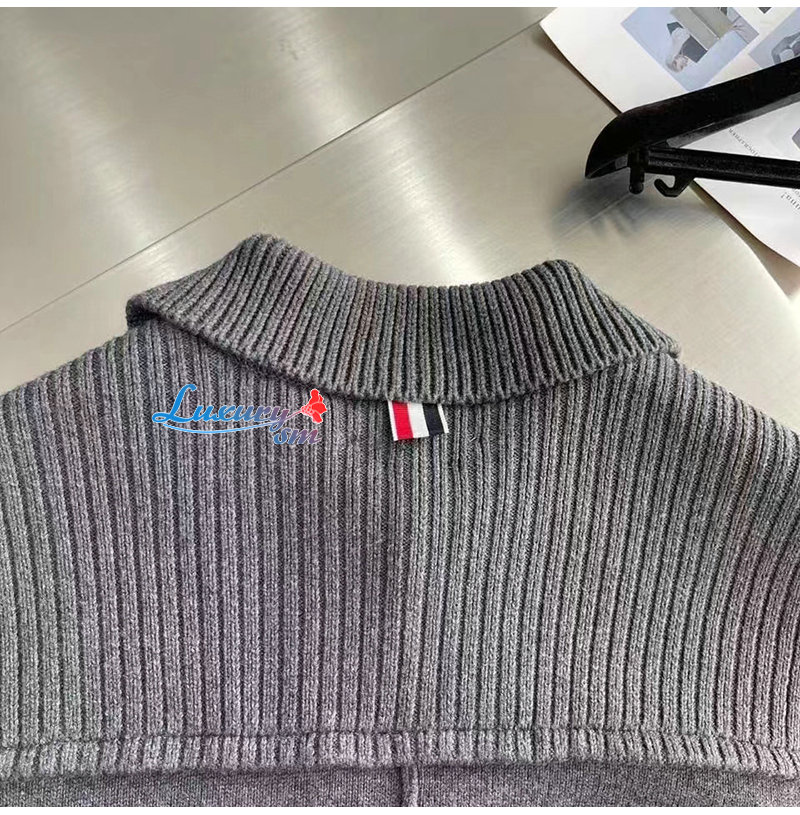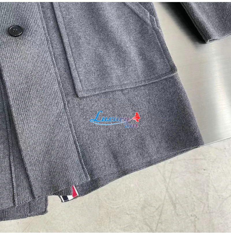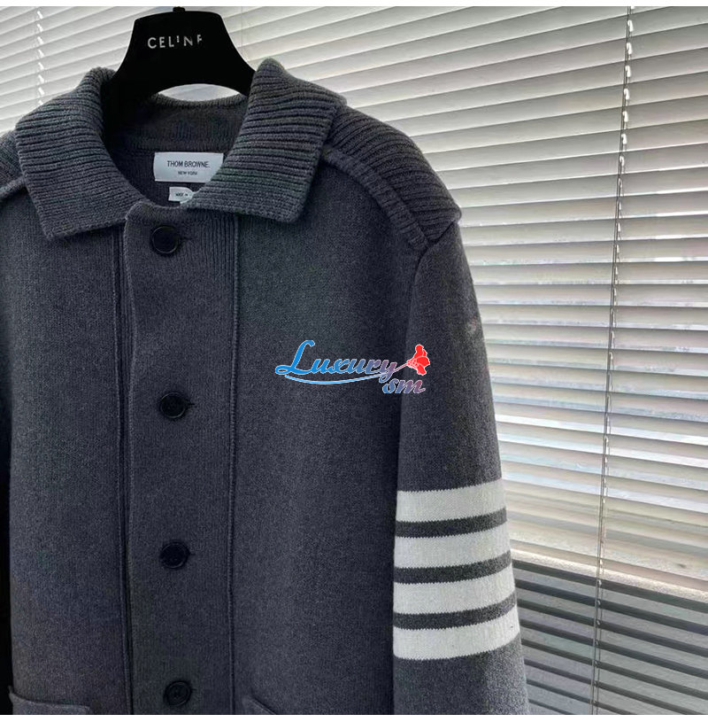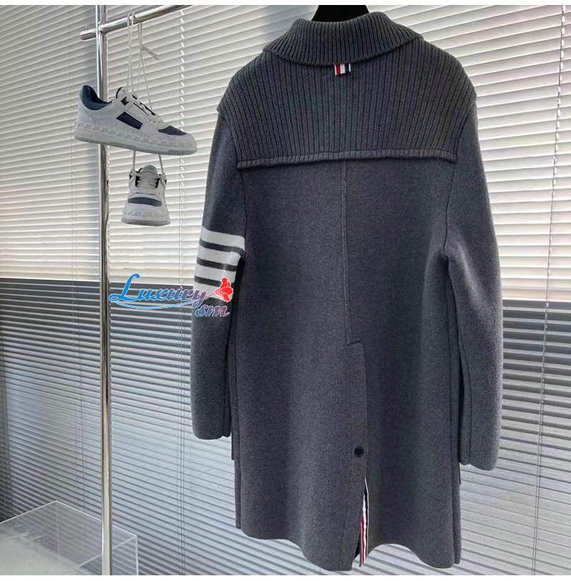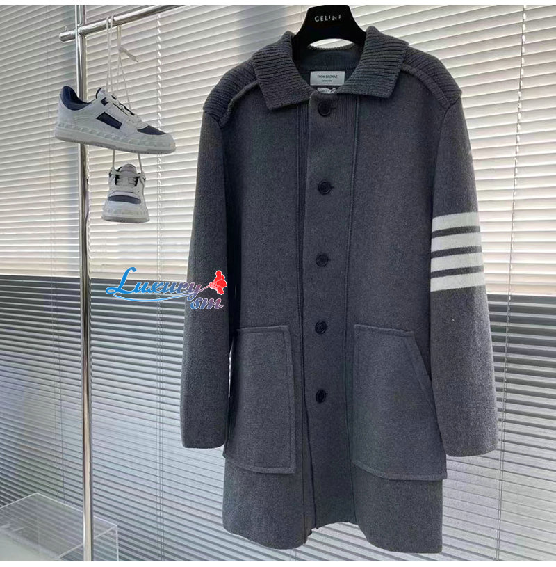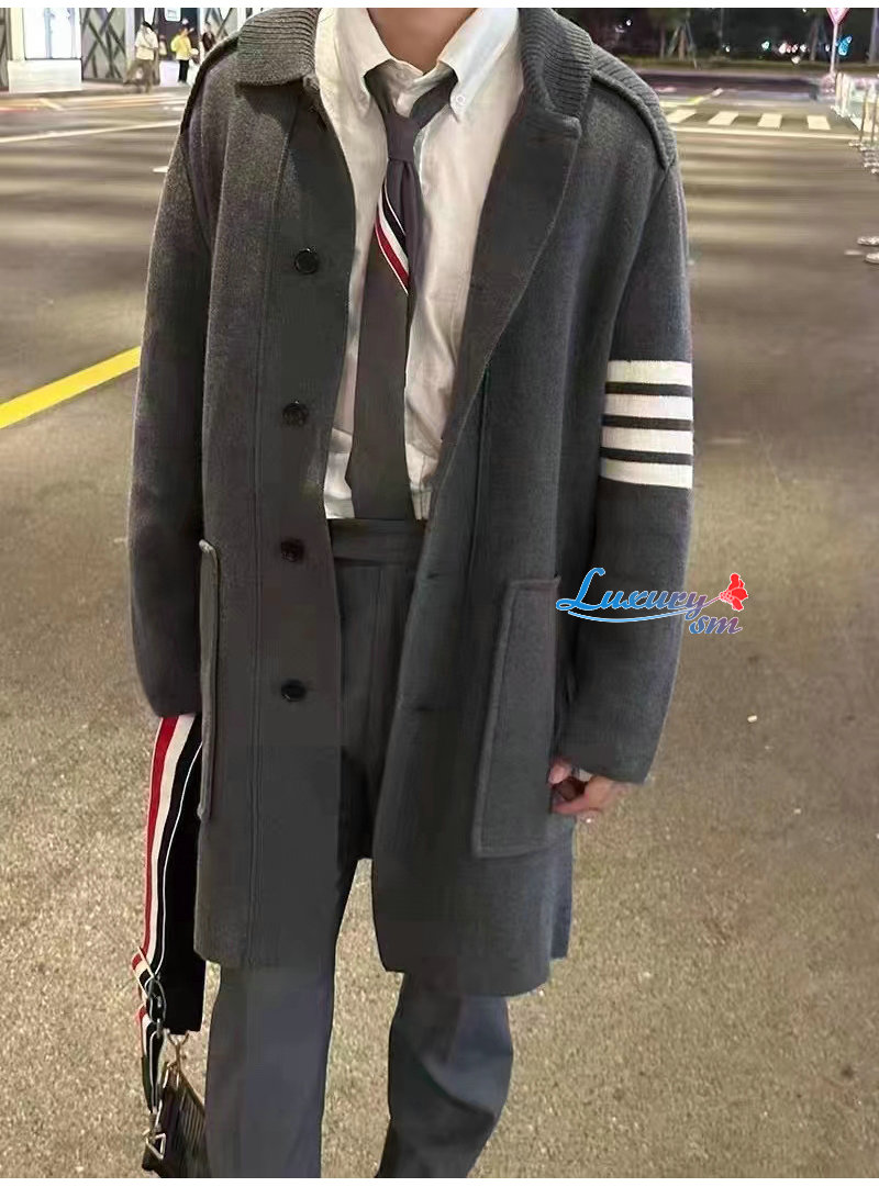 THOM BROWNE-12236 톰 브라운 그레이 스트라이프 장식 코트 남여공용