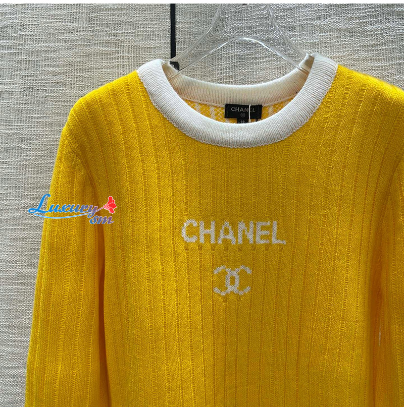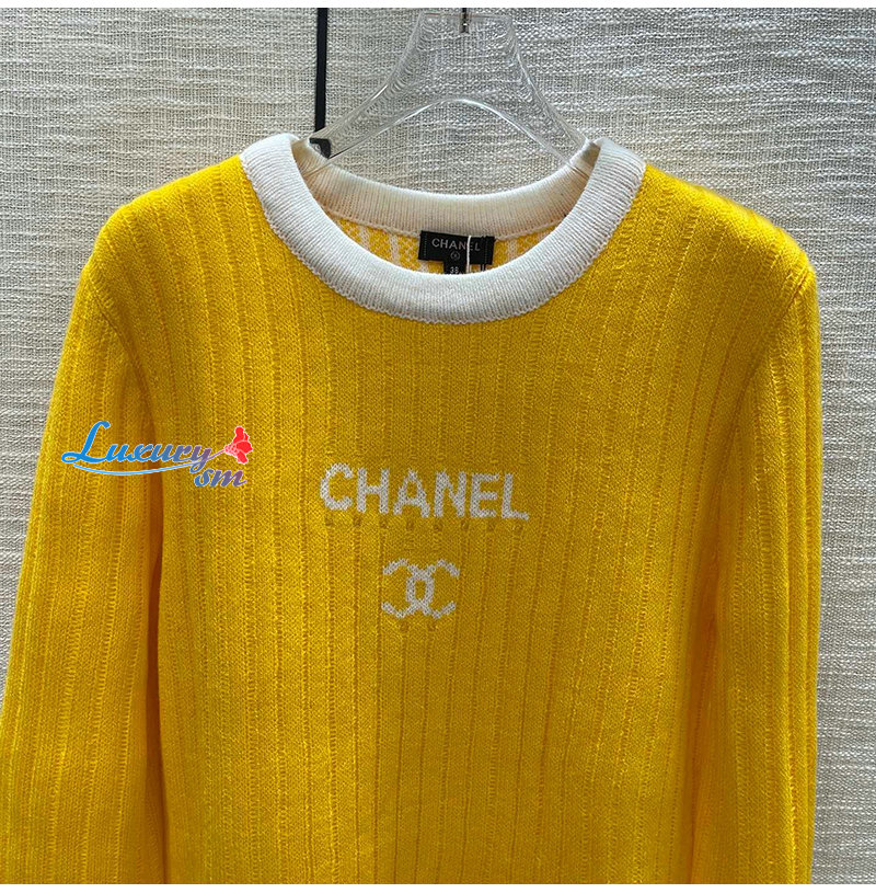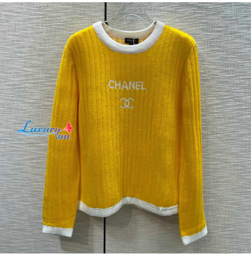 CHANEL-12306 샤넬 옐로우 니트 코튼 스웨터