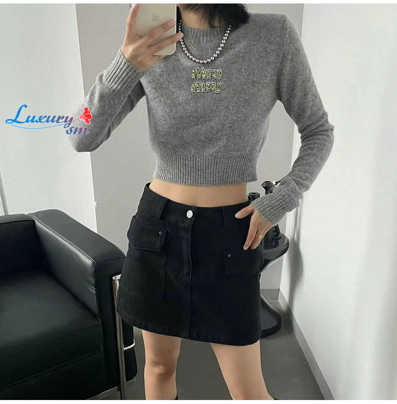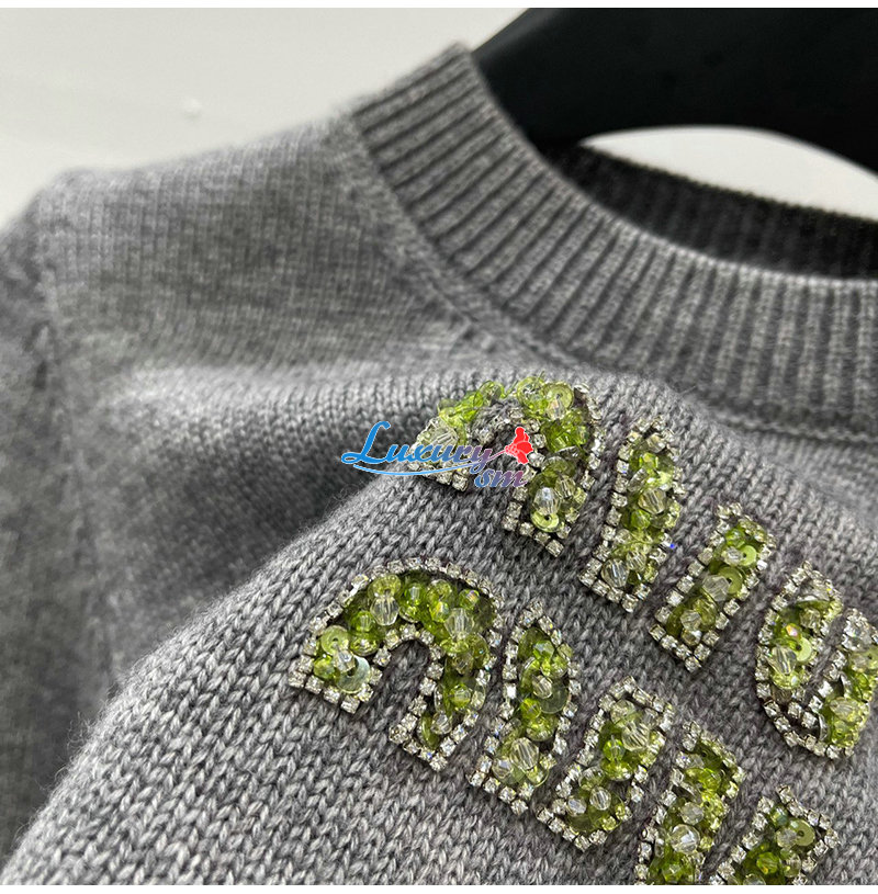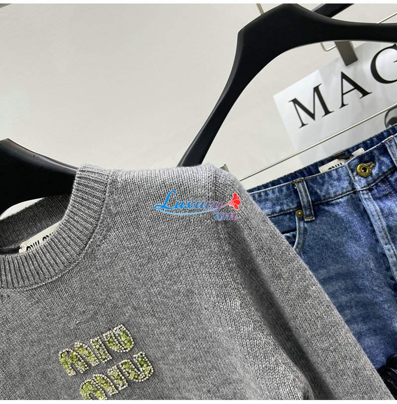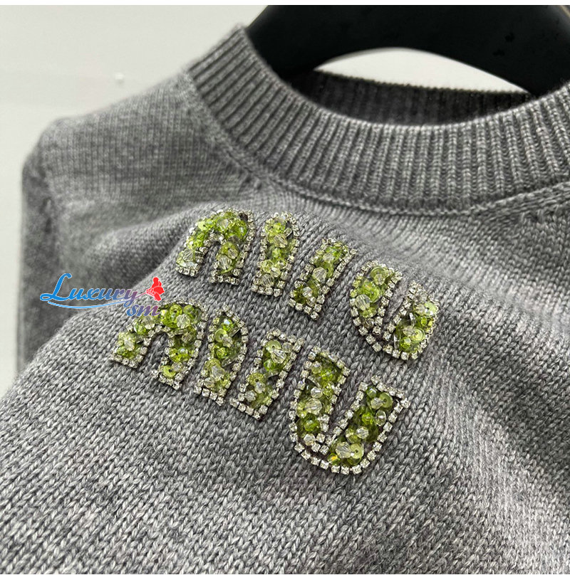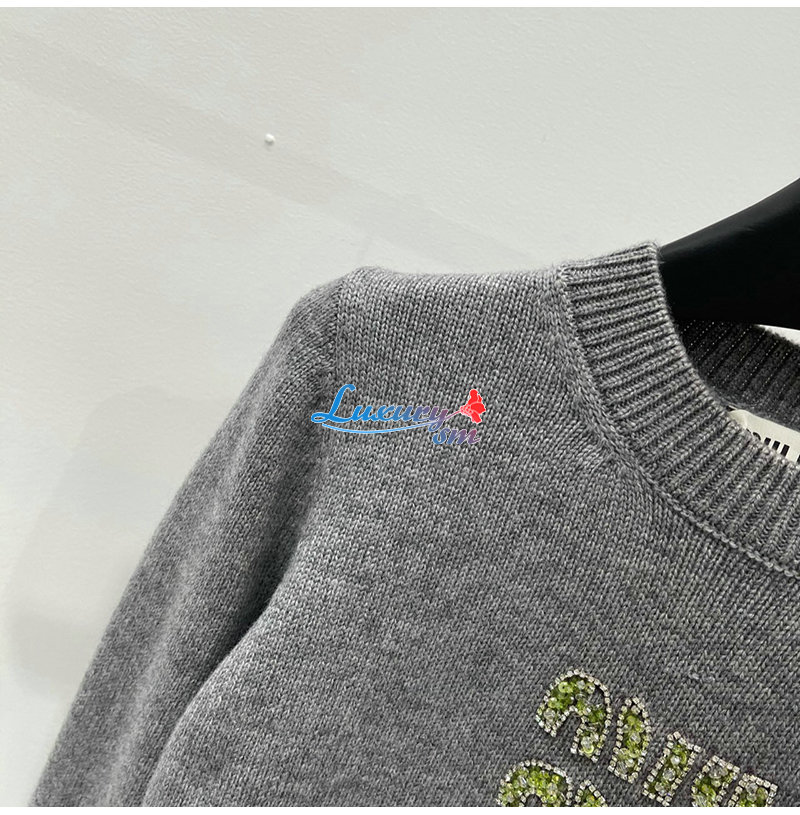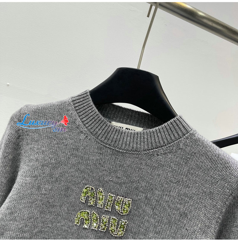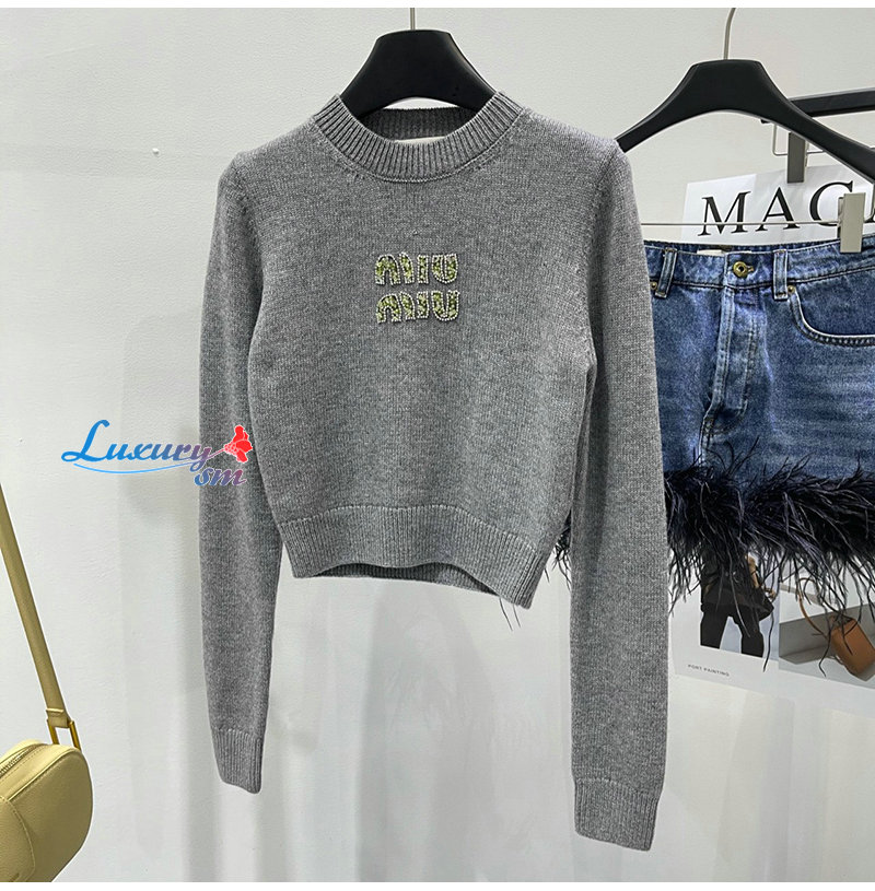 MIUMIU-01184 미우미우 그레이 아플리케 장식 스웨터 여성용
