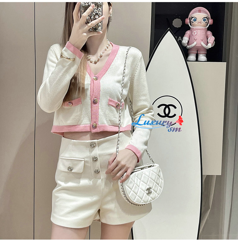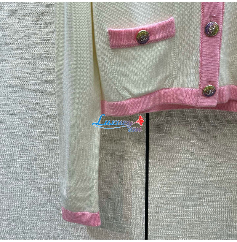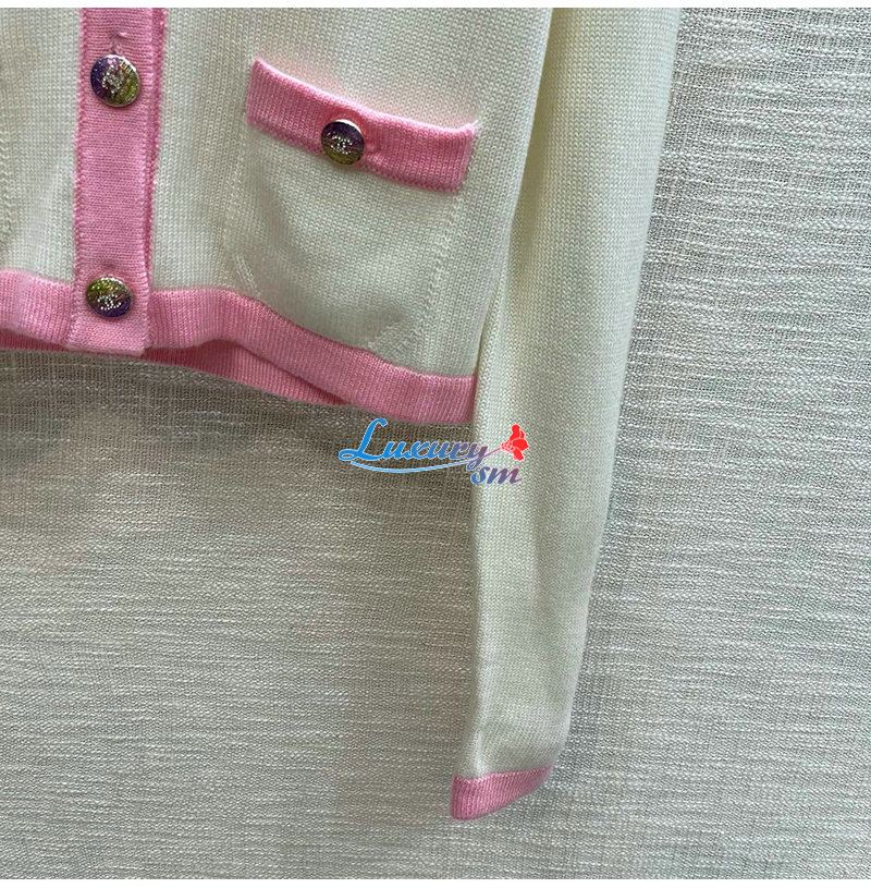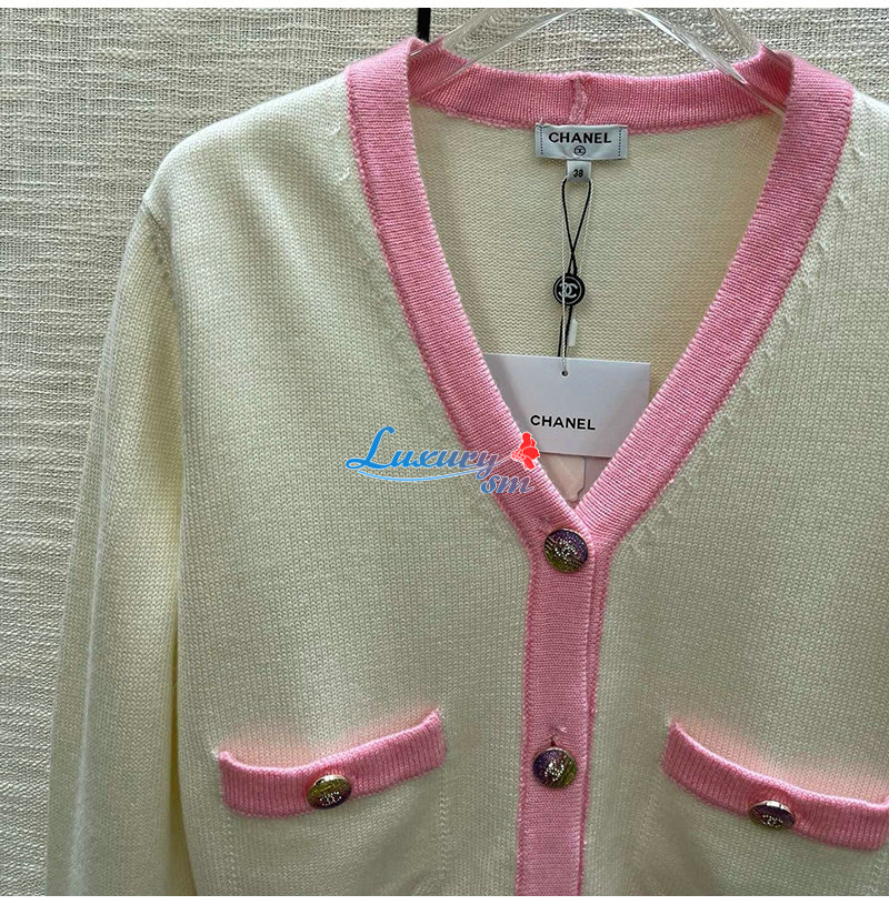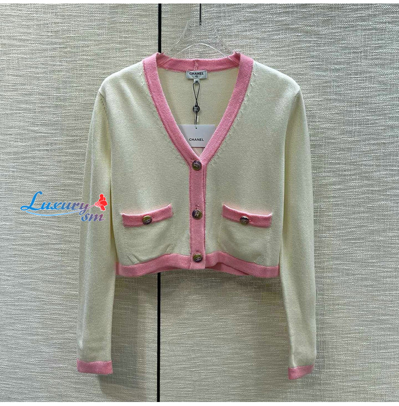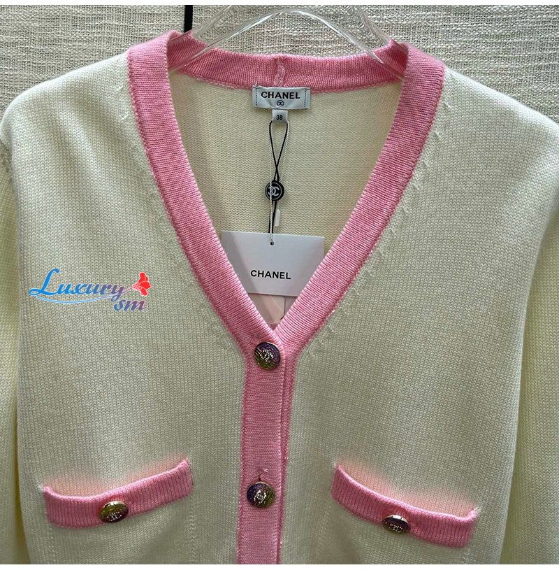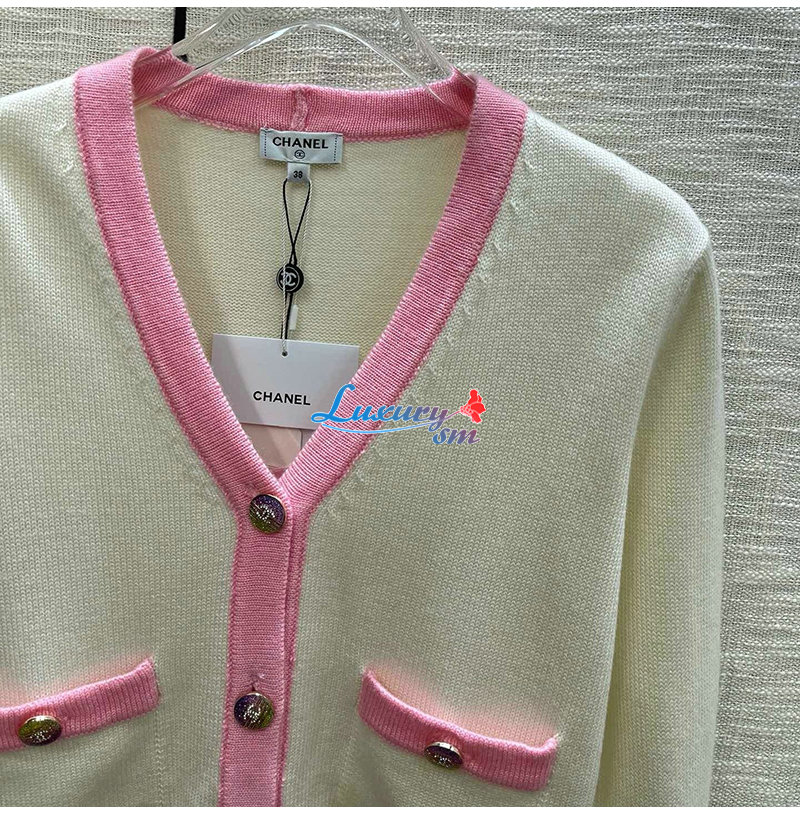 CHANEL-012114 샤넬 화이트/핑크 니트 코튼 가디건 여성용