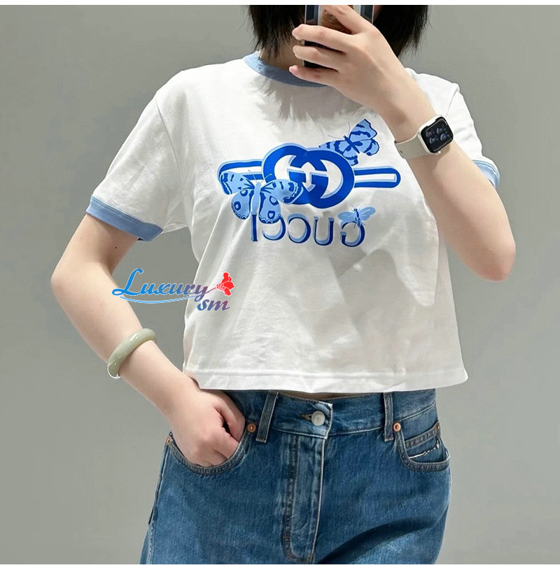 GUCCI-06231 구찌 화이트 프린트 장식 티셔츠 여성용
