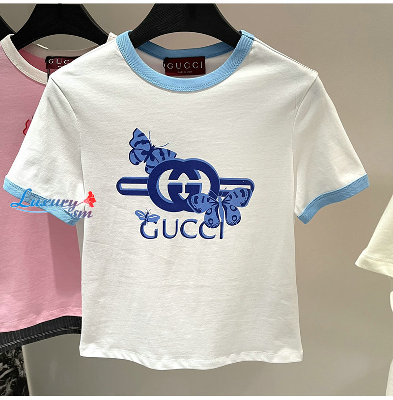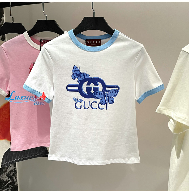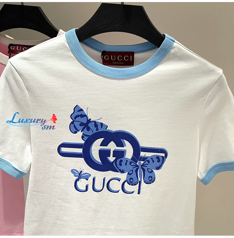 GUCCI-06232 구찌 핑크 프린트 장식 티셔츠 여성용