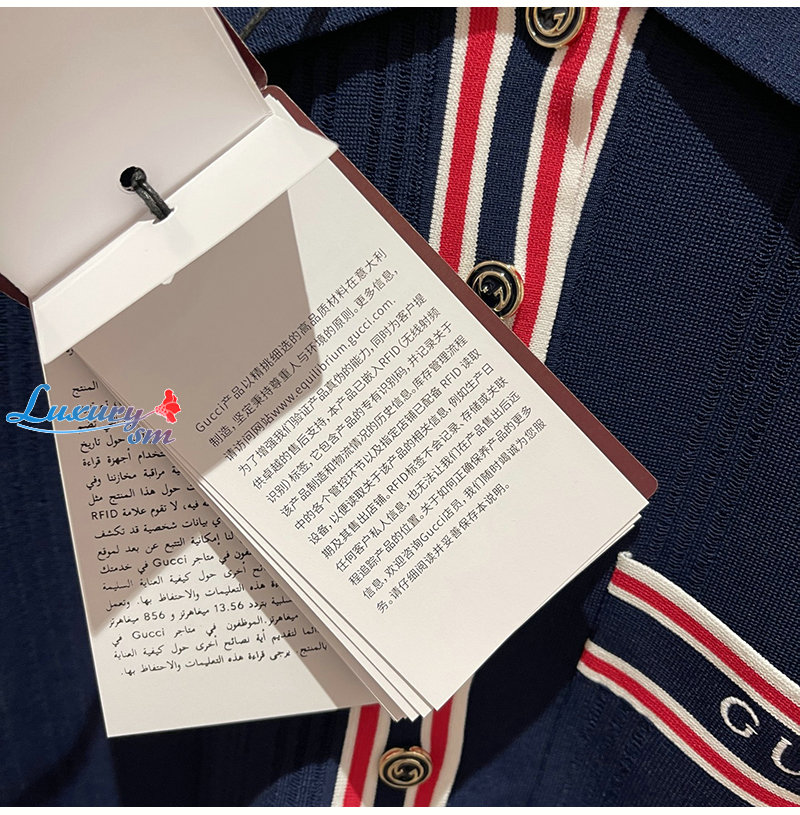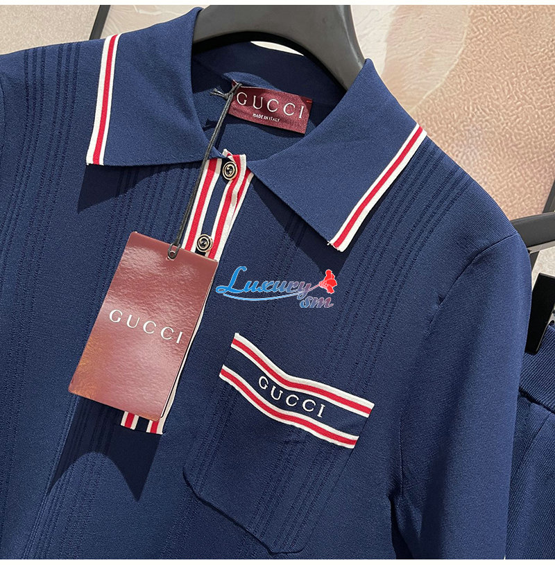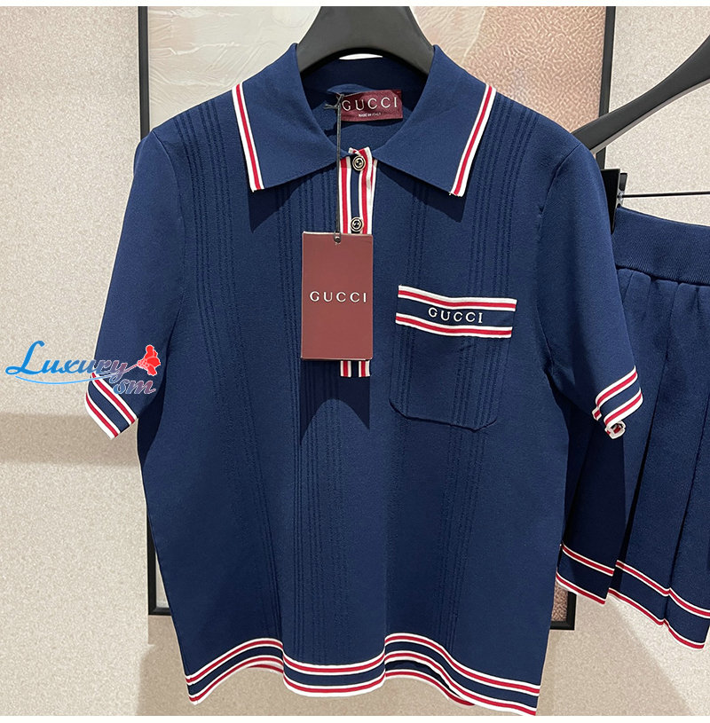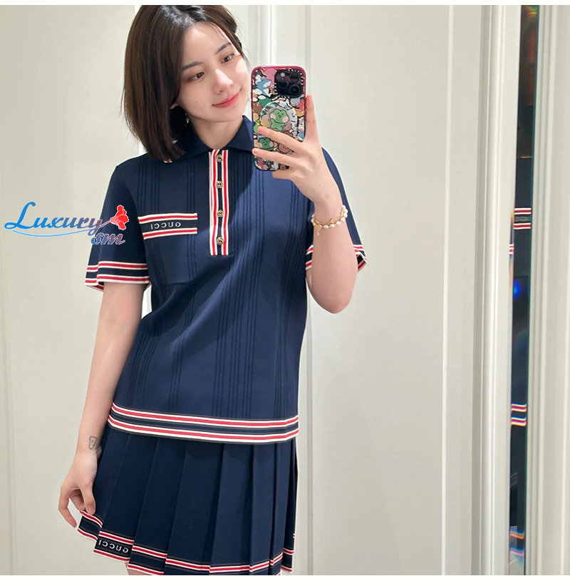 GUCCI-07305 구찌 네이비 스트라이프 장식 폴로 트셔츠 여성용