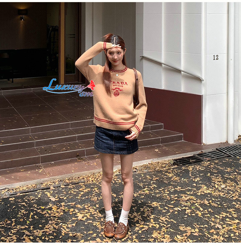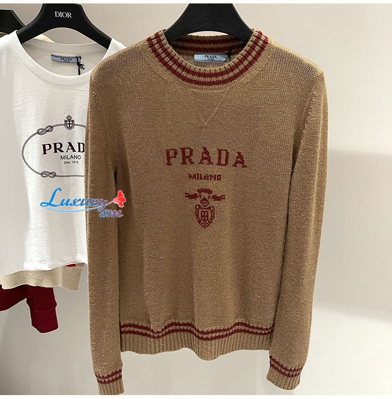 PRADA-082016 프라다 카멜/레드 니트 코튼 스웨터 여성용
