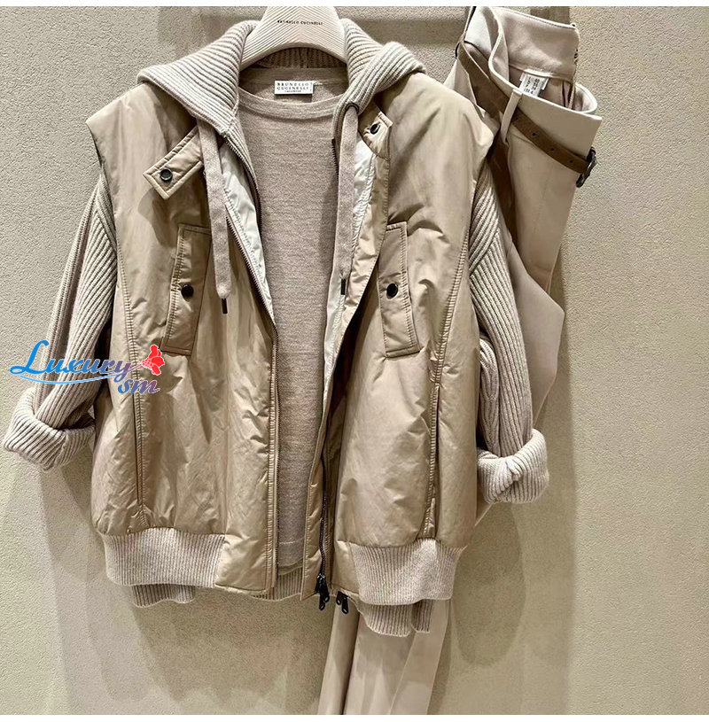 Brunello Cucinelli-09232 브루넬로 쿠치넬리 베이지/핑크 조끼/재킷 세트 여성용