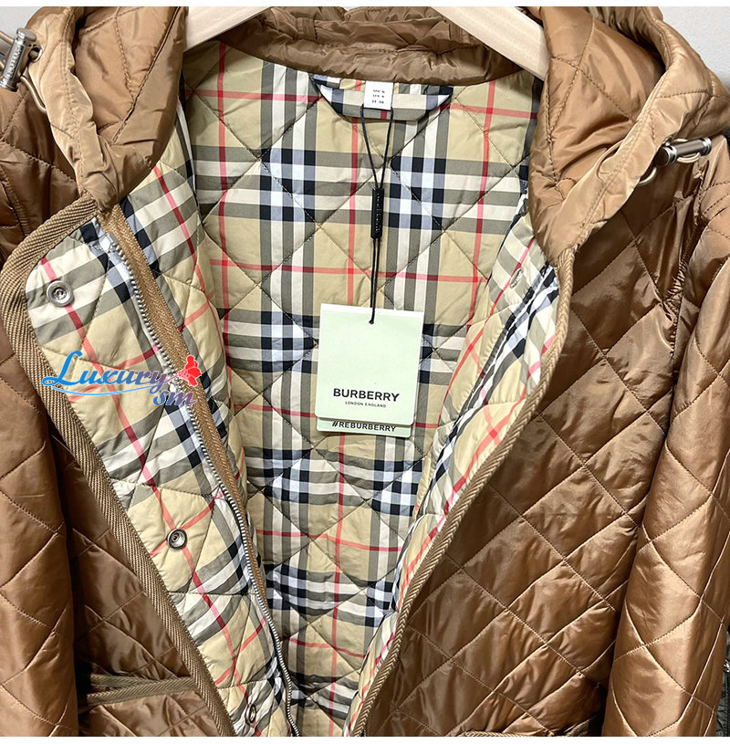 BURBERRY-80776601 버버리 브라운 퀼팅 나일론 코트 여성용