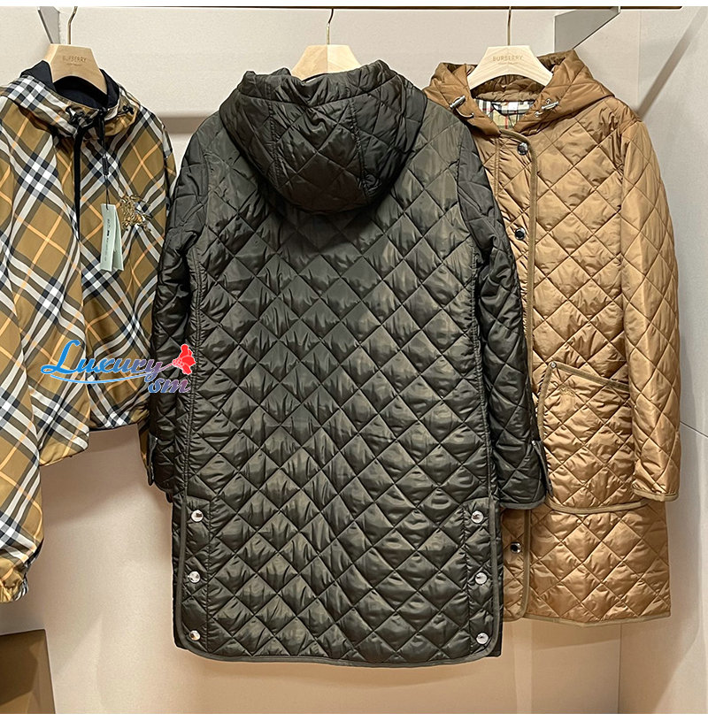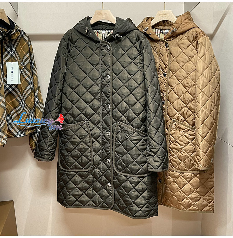 BURBERRY-80745231 버버리 카키 퀼팅 나일론 코트 여성용