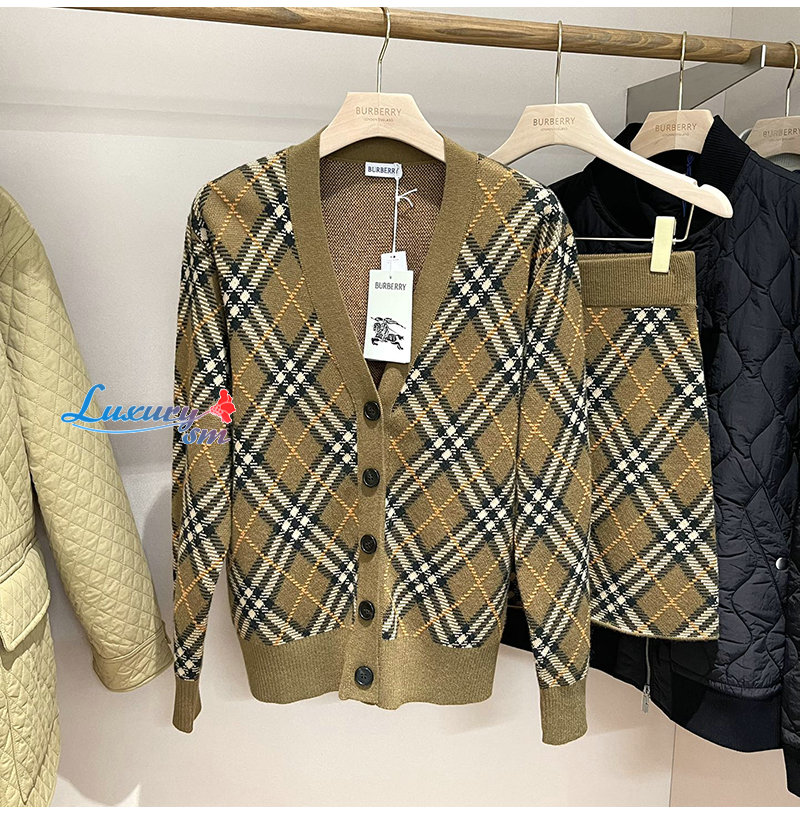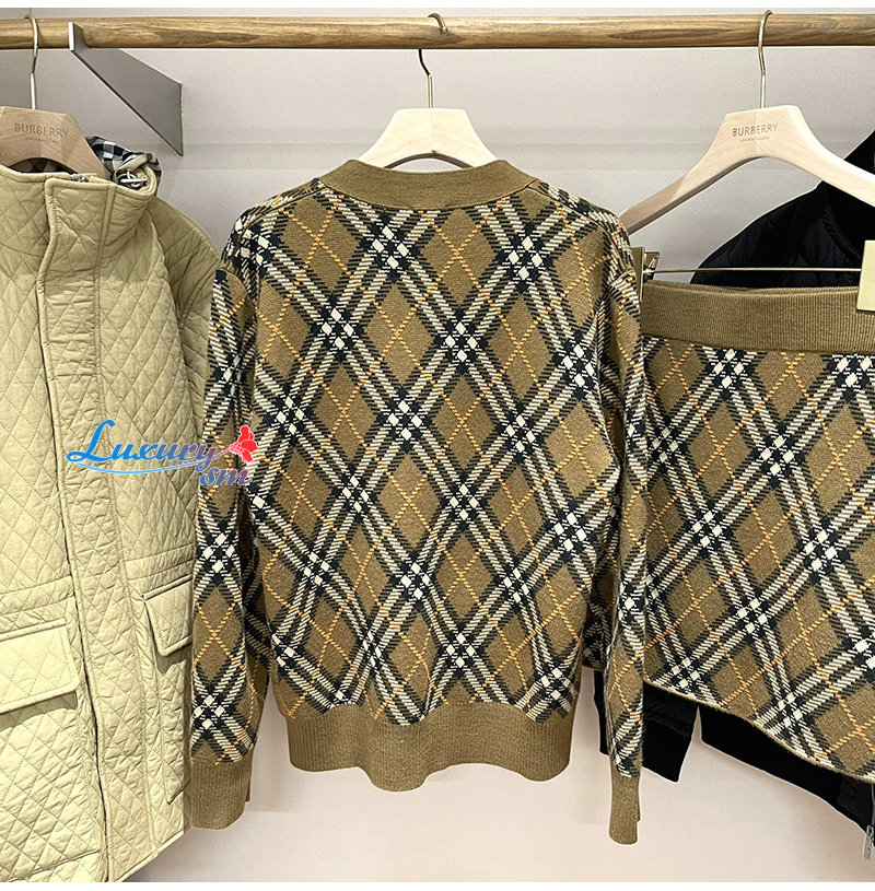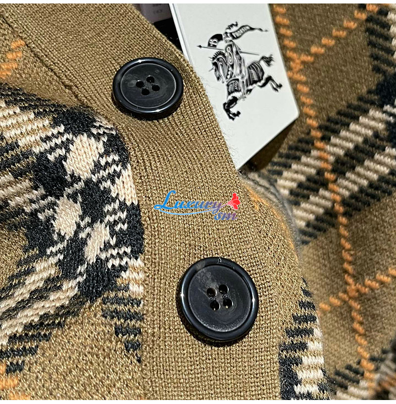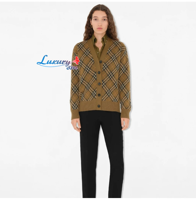 BURBERRY-80996211 버버리 쉬루 체크 울 모헤어 블렌드 카디건 여성용