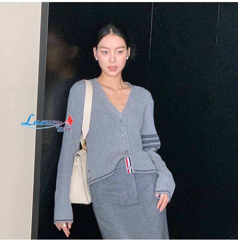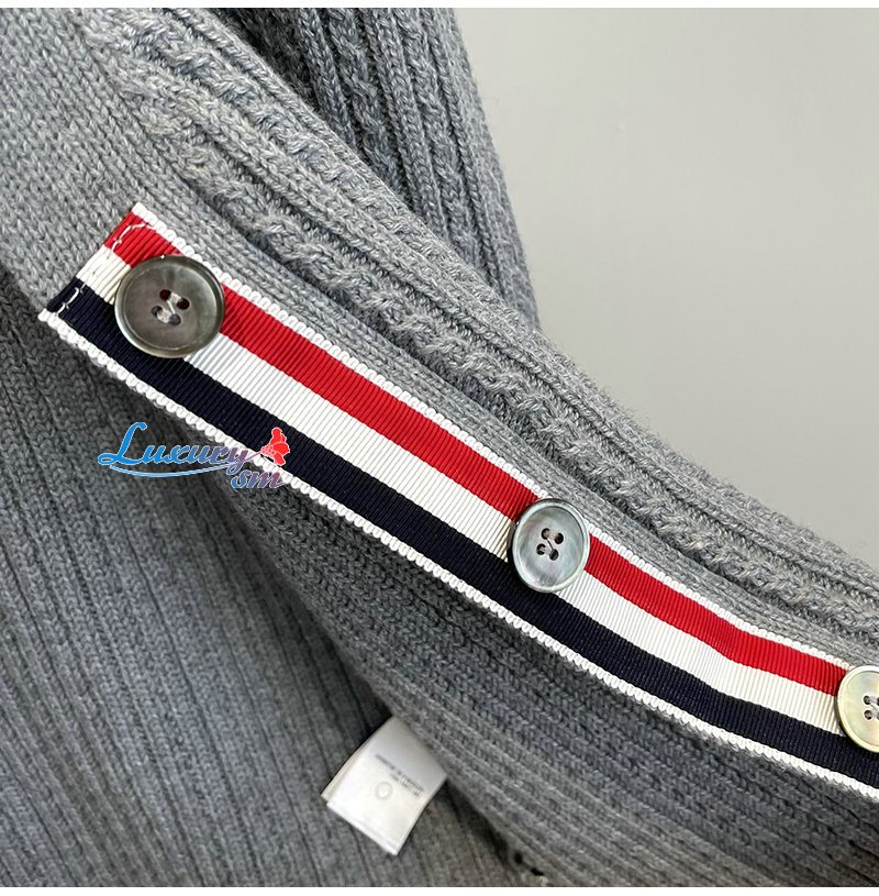 THOM BROWNE-11112 톰 브라운 그레이 스트라이프 장식 가디건 여성용