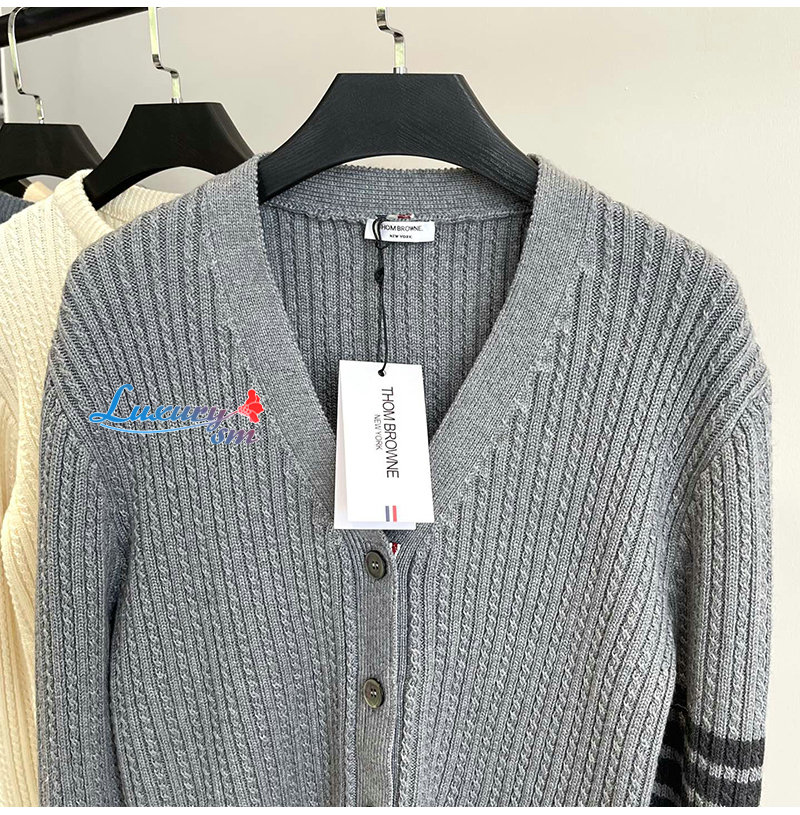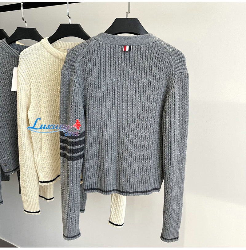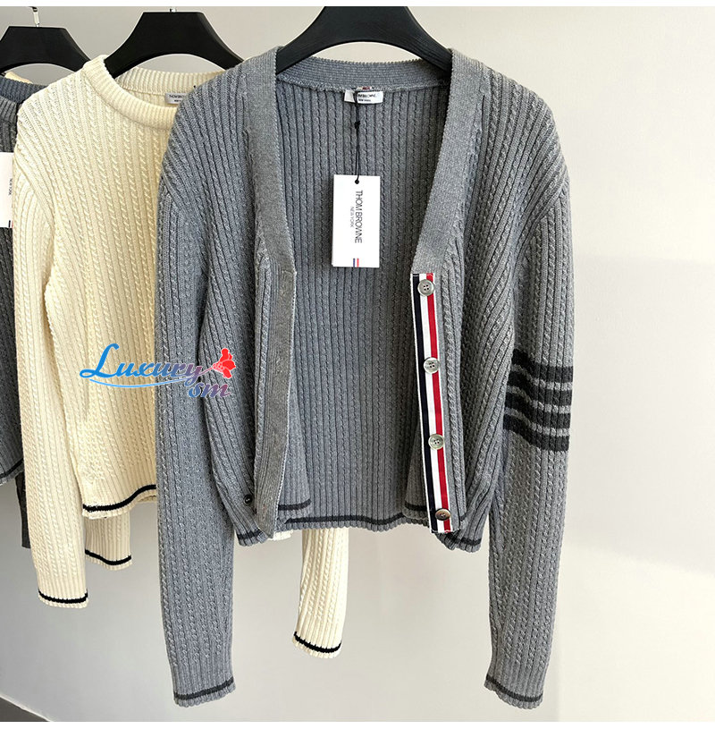 THOM BROWNE-11111 톰 브라운 아이보리 스트라이프 장식 가디건 여성용 가격 : 250,000원