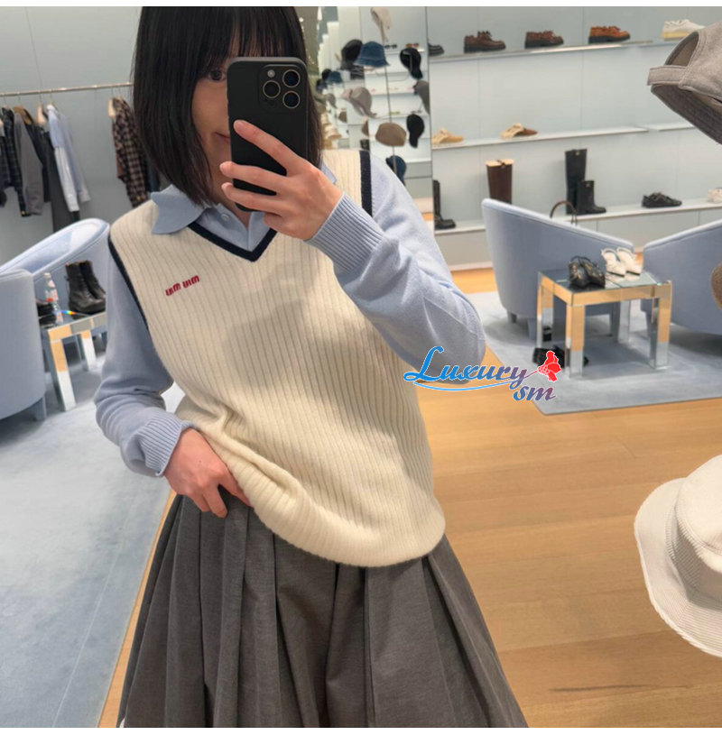 MIUMIU-03241 미우미우 화이트 니트 코튼 베스트 여성용
