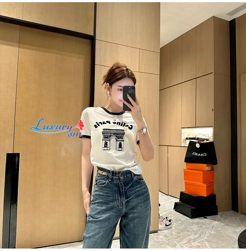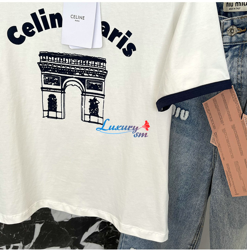 CELINE-03243 셀린느 화이트 아플리케 장식 티셔츠 여성용
