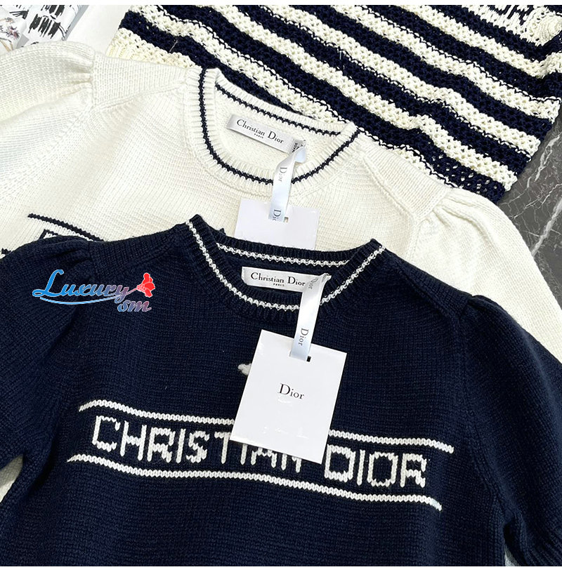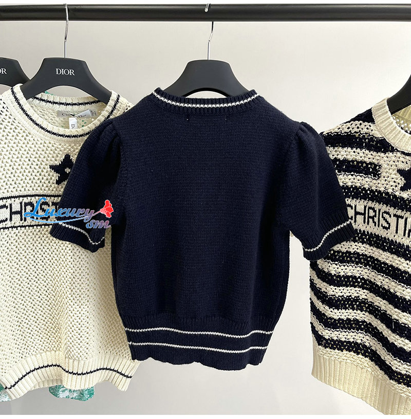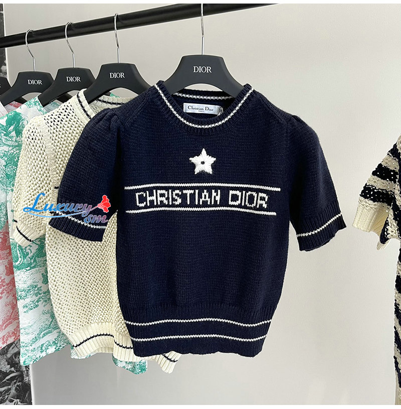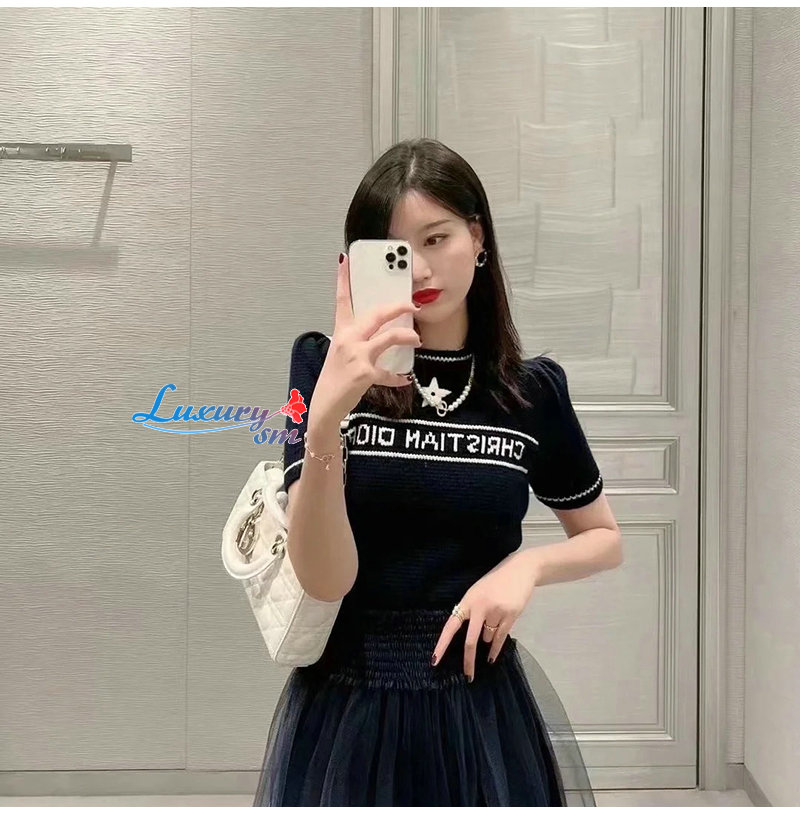 DIOR-154S09 디올 네이비 울 캐시미어 니트 티셔츠 여성용