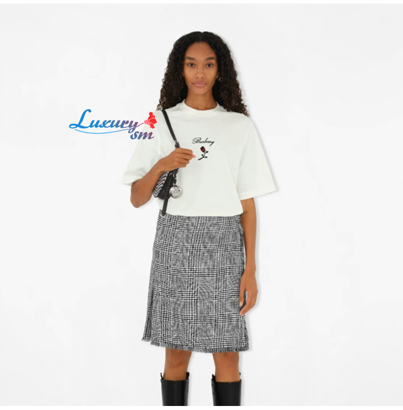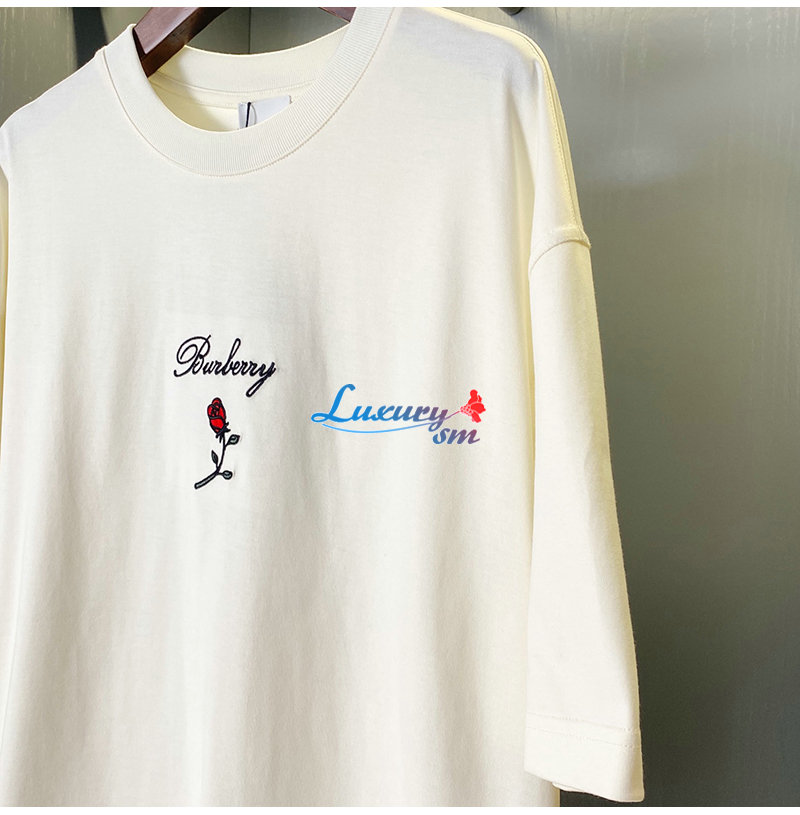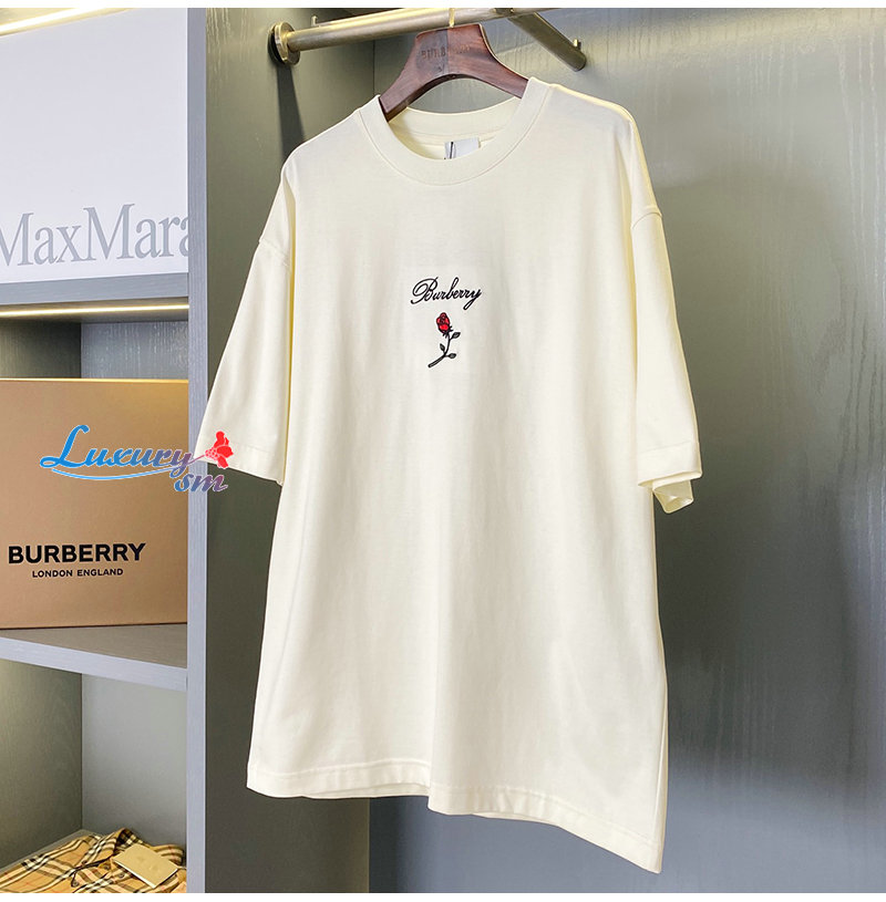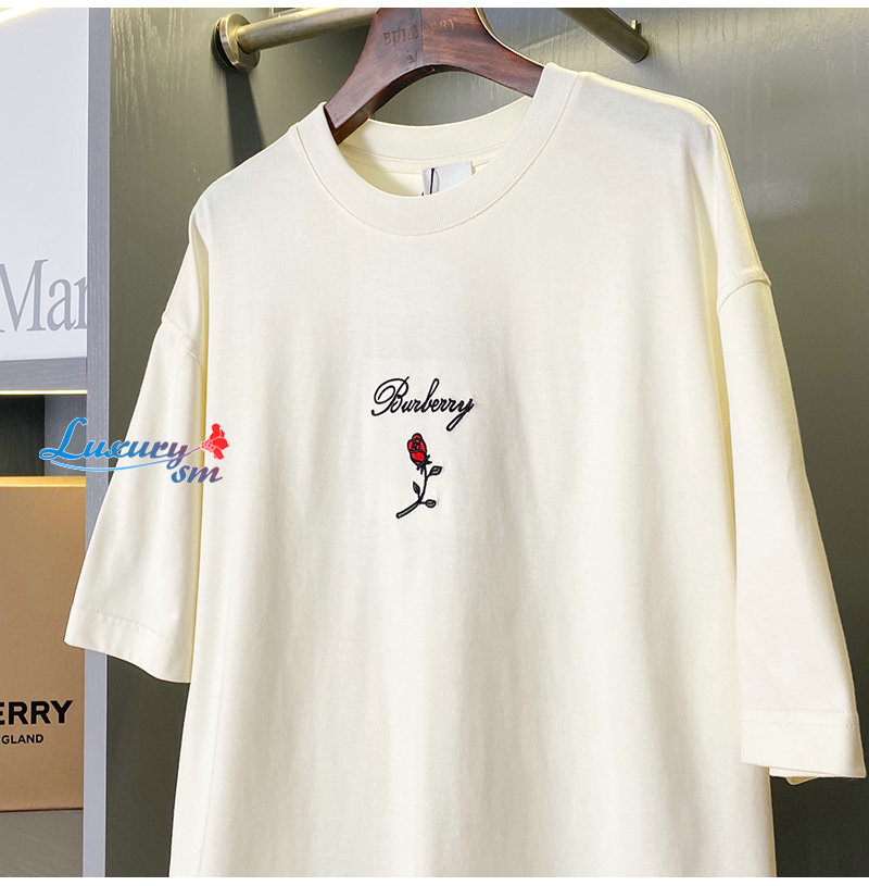 BURBERRY-80836471 버버리 화이트 로즈 코튼 티셔츠 남여공용