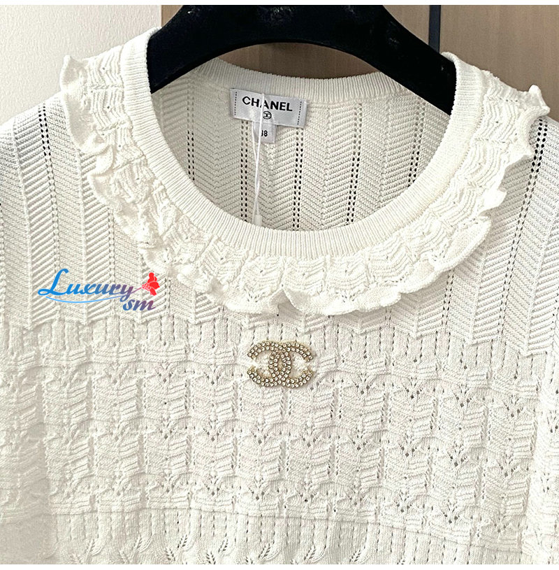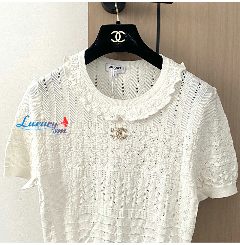 CHANEL-07263 샤넬 화이트 니트 코튼 티셔츠